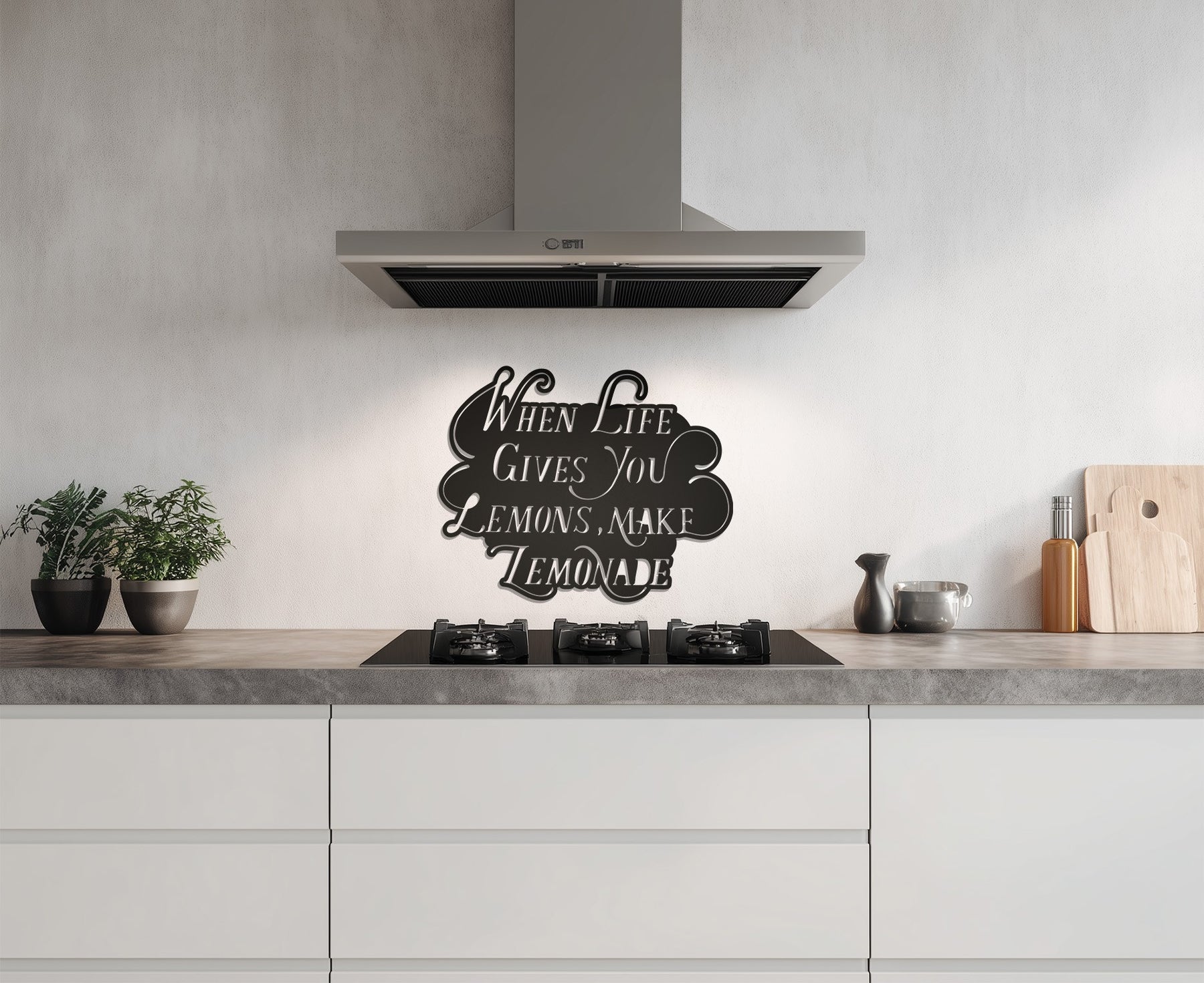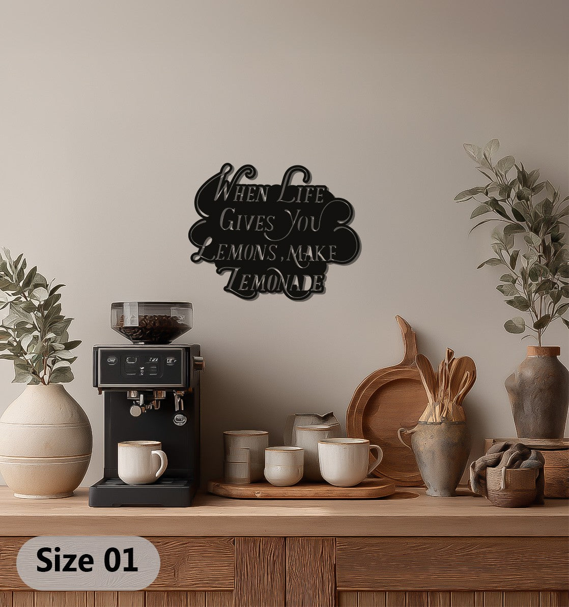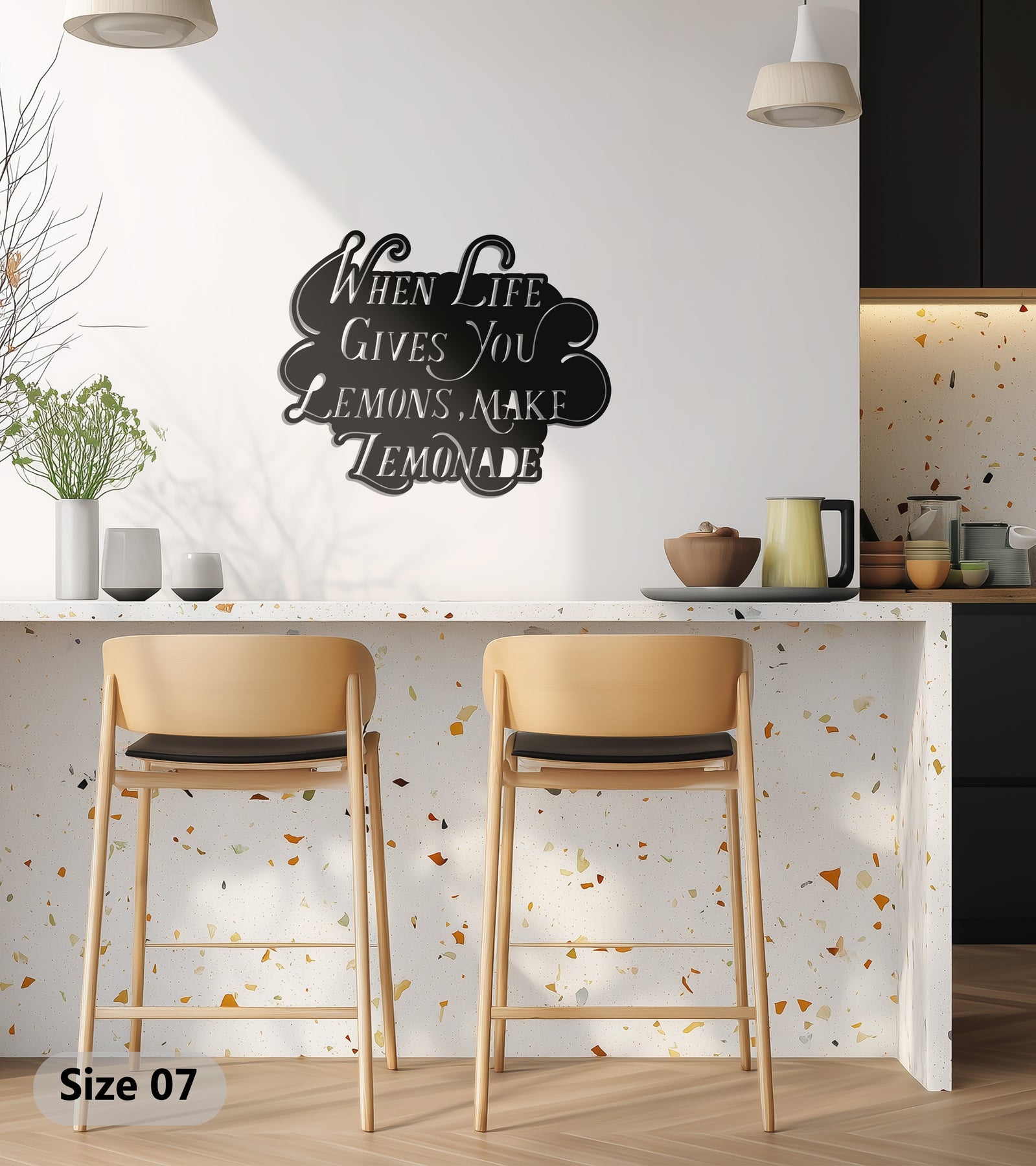 Brighten up your kitchen or dining area with the When Life Gives You Lemons, Make Lemonade metal wall art. This elegant design combines uplifting words with artistic typography, reminding you to find positivity and creativity in every challenge.