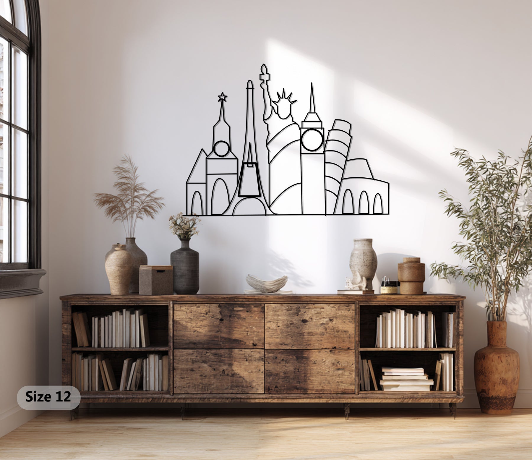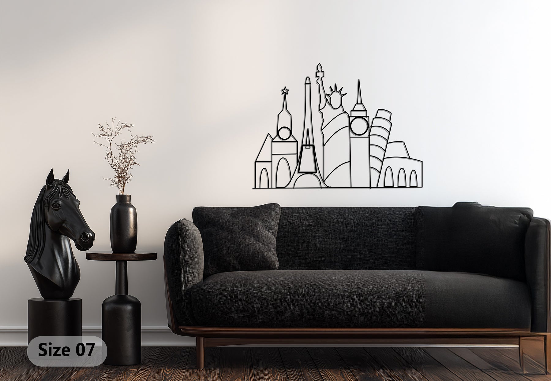 Global skyline metal wall hanging minimalist style