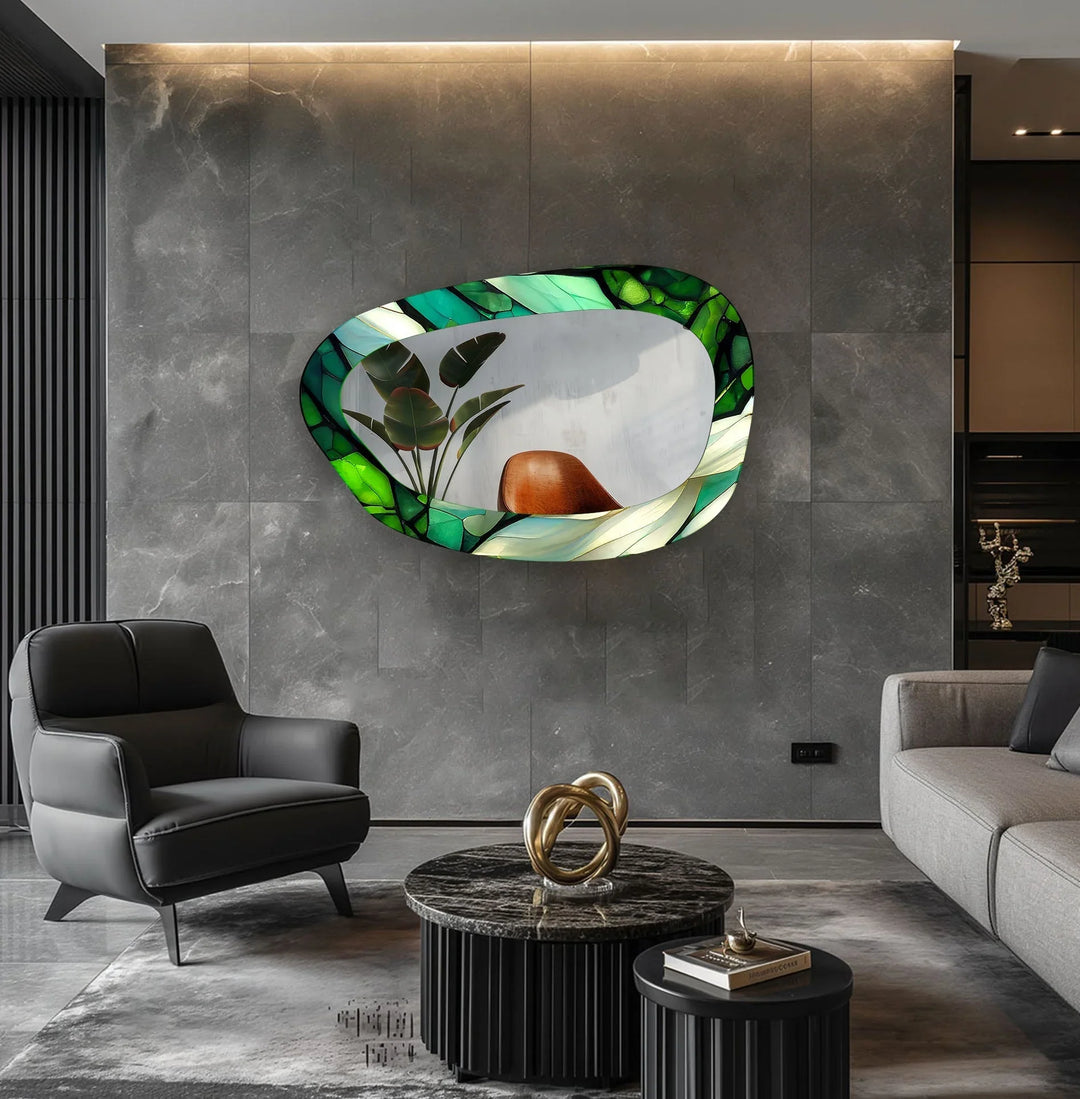Visit MyPhotoStation to browse our exclusive collection of green wall mirrors. With our easy-to-use online platform, fast shipping to the USA and UK, and a range of styles to choose from, you’re sure to find the perfect mirror to enhance your home or office. Whether you're looking for something artistic and unique or a piece that reflects contemporary art trends, our selection has something for everyone. Don't miss out on our latest glass wall art, glass art and cool wall art which can add a touch of elegance and sophistication to any space.