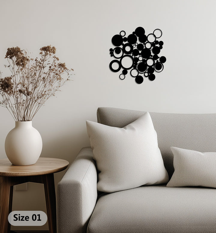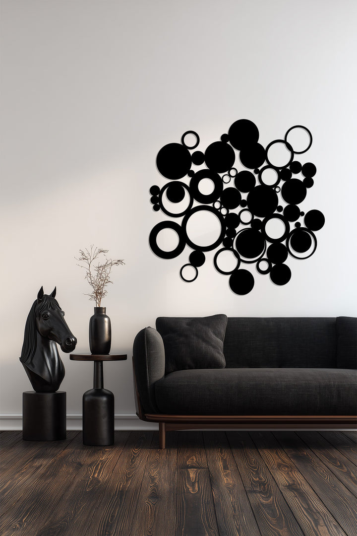 Add a bold and contemporary touch to your interiors with this Abstract Circles Metal Wall Art. Featuring an eye-catching arrangement of overlapping circular shapes in various sizes, this design brings balance, flow, and modern elegance to any space. The sleek black finish creates striking contrast against light or textured walls, making it a standout piece in living rooms, bedrooms, or office spaces.