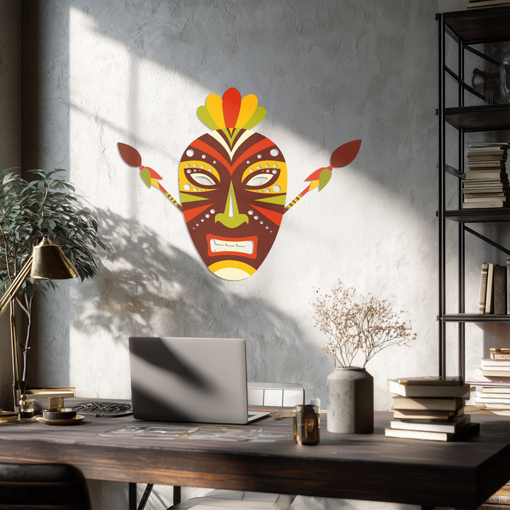 African Tribal Mask Metal Wall Art – Bold Ethnic Wall Decor