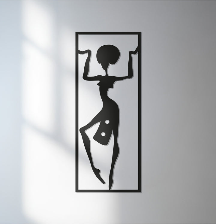 Celebrate culture and artistry with this African Tribal Woman Metal Wall Art, a bold silhouette piece crafted in a sleek black finish. The elegant figure, framed within a rectangle, captures movement and rhythm, making it a stunning wall accent for modern interiors.