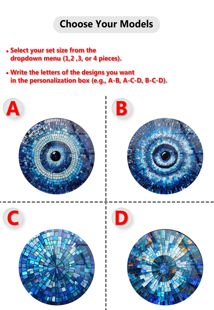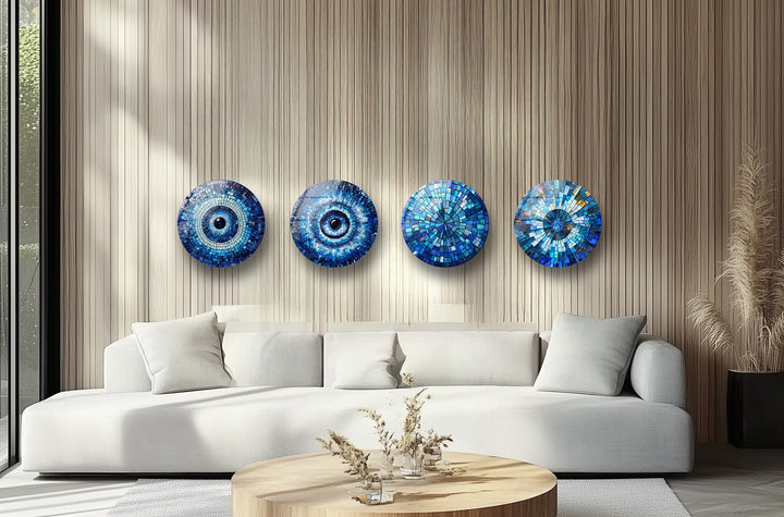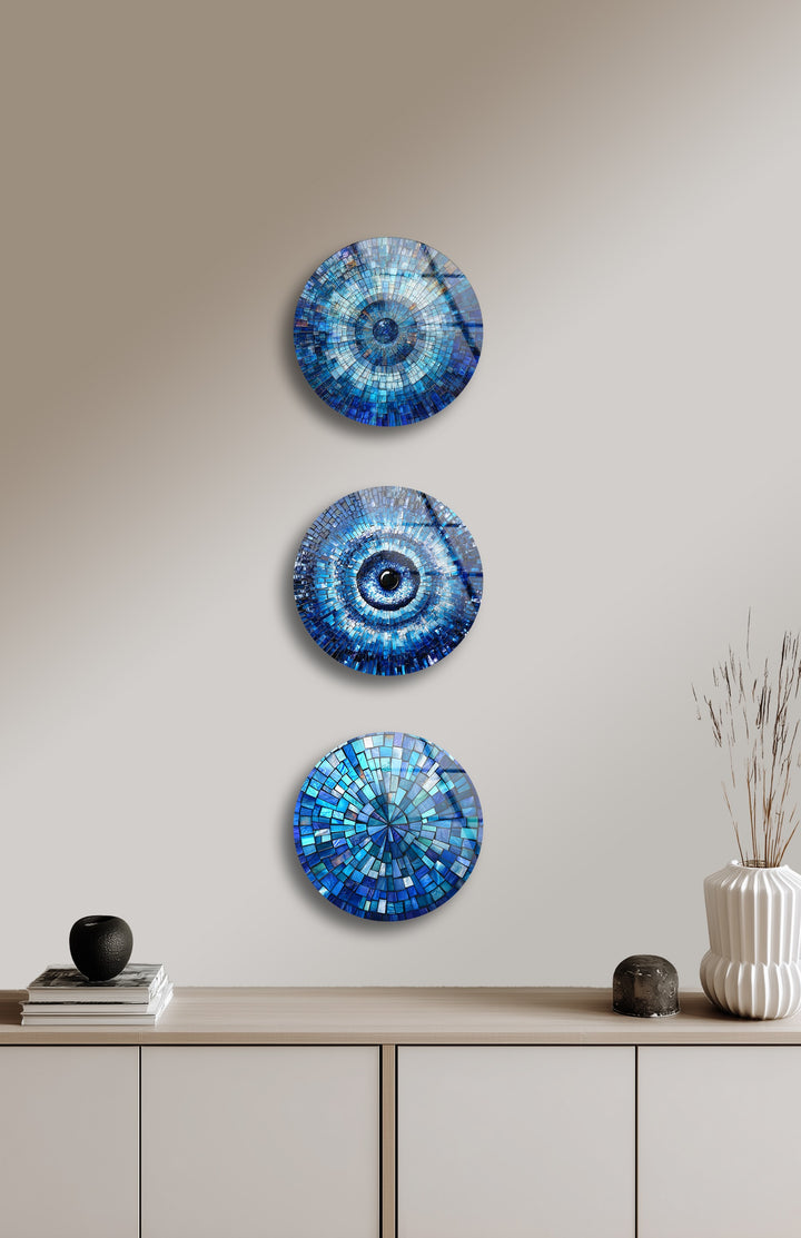 Blue Mosaic Harmony – Evil Eye Inspired Round Glass Wall Art Set