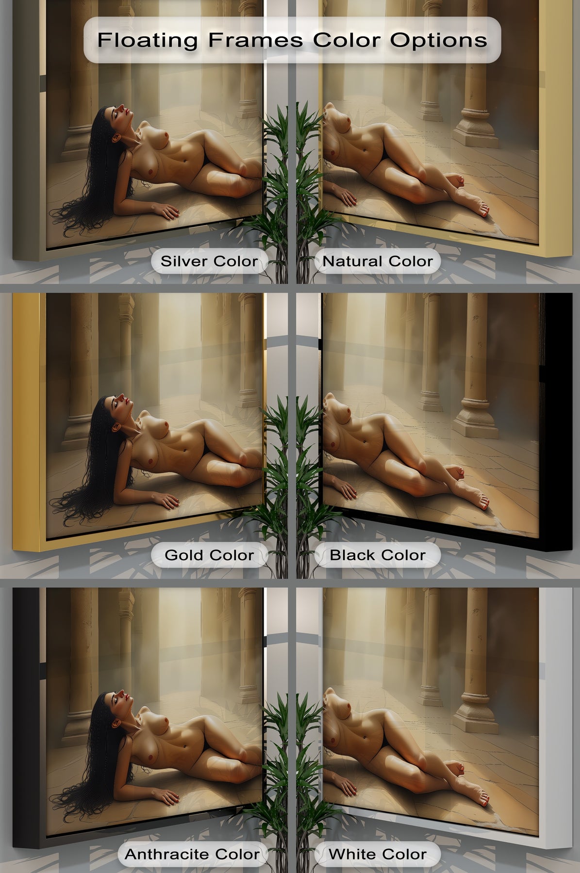 This moody nude canvas print channels classical allure and sacred sensuality, ideal for interiors that crave emotional resonance and visual depth. The muted ochre palette, dramatic shadows, and cathedral architecture create a composition steeped in serenity and suggestion—perfect for a bedroom, private gallery wall, or a romantic reading nook. The image speaks to those who see the body as both temple and prayer.