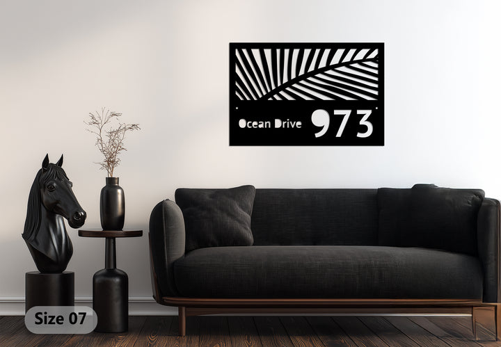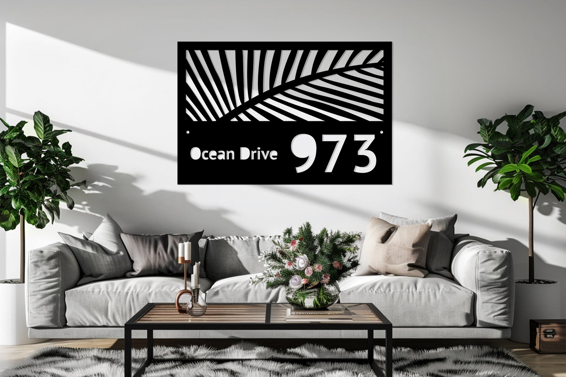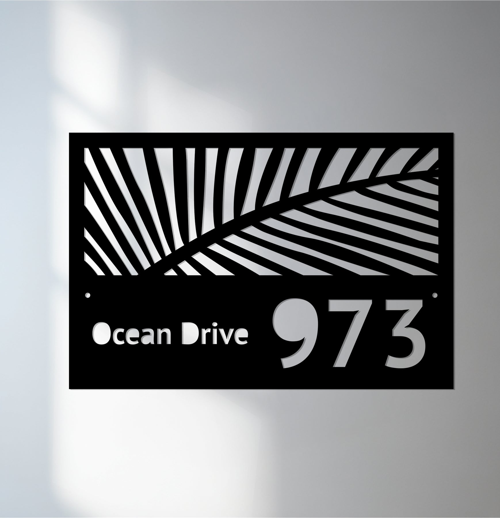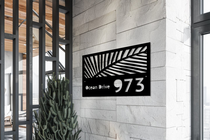 Bring a touch of coastal elegance to your home exterior with this Custom Metal Address Sign, featuring a bold tropical palm leaf design. Perfect for modern seaside homes, vacation rentals, or anyone looking to add a refreshing natural accent to their outdoor décor.