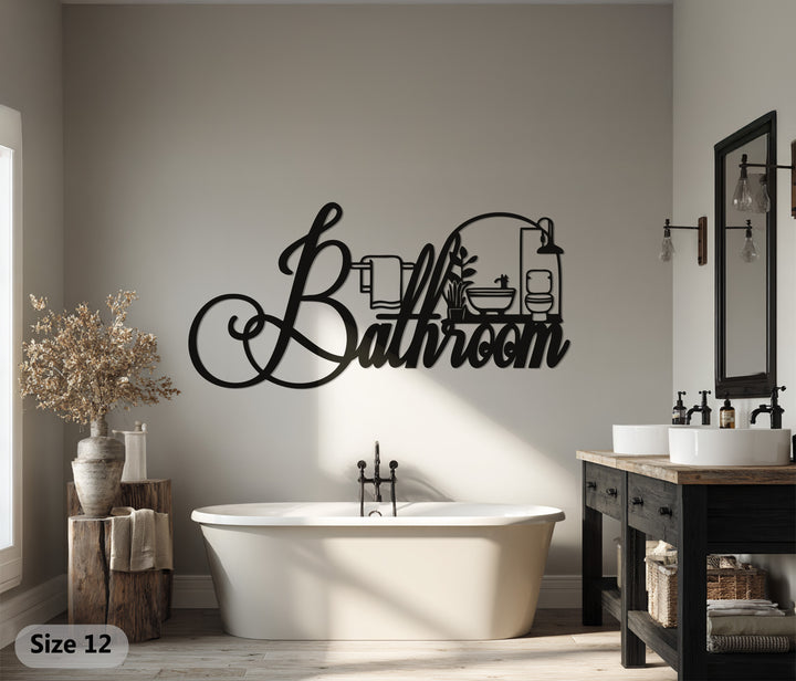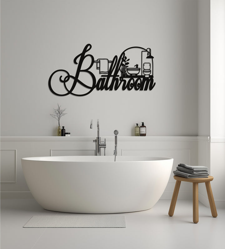 Elegant Script Bathroom – Modern Metal Wall Art Decor