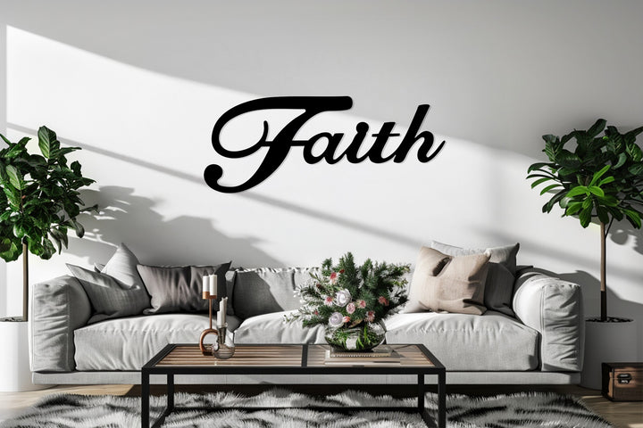 Bring peace and positivity into your home with the Faith Metal Wall Art. Crafted in elegant cursive lettering, this design serves as a timeless reminder to stay grounded in belief and hope. Its sleek finish and simple elegance make it a beautiful accent for living rooms, entryways, or prayer spaces.