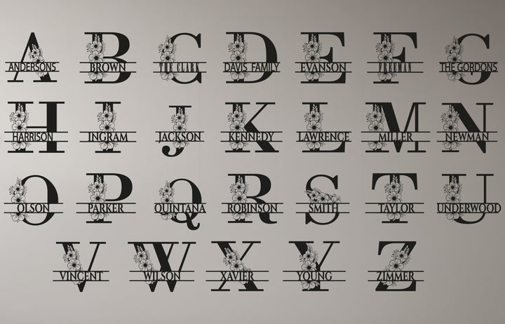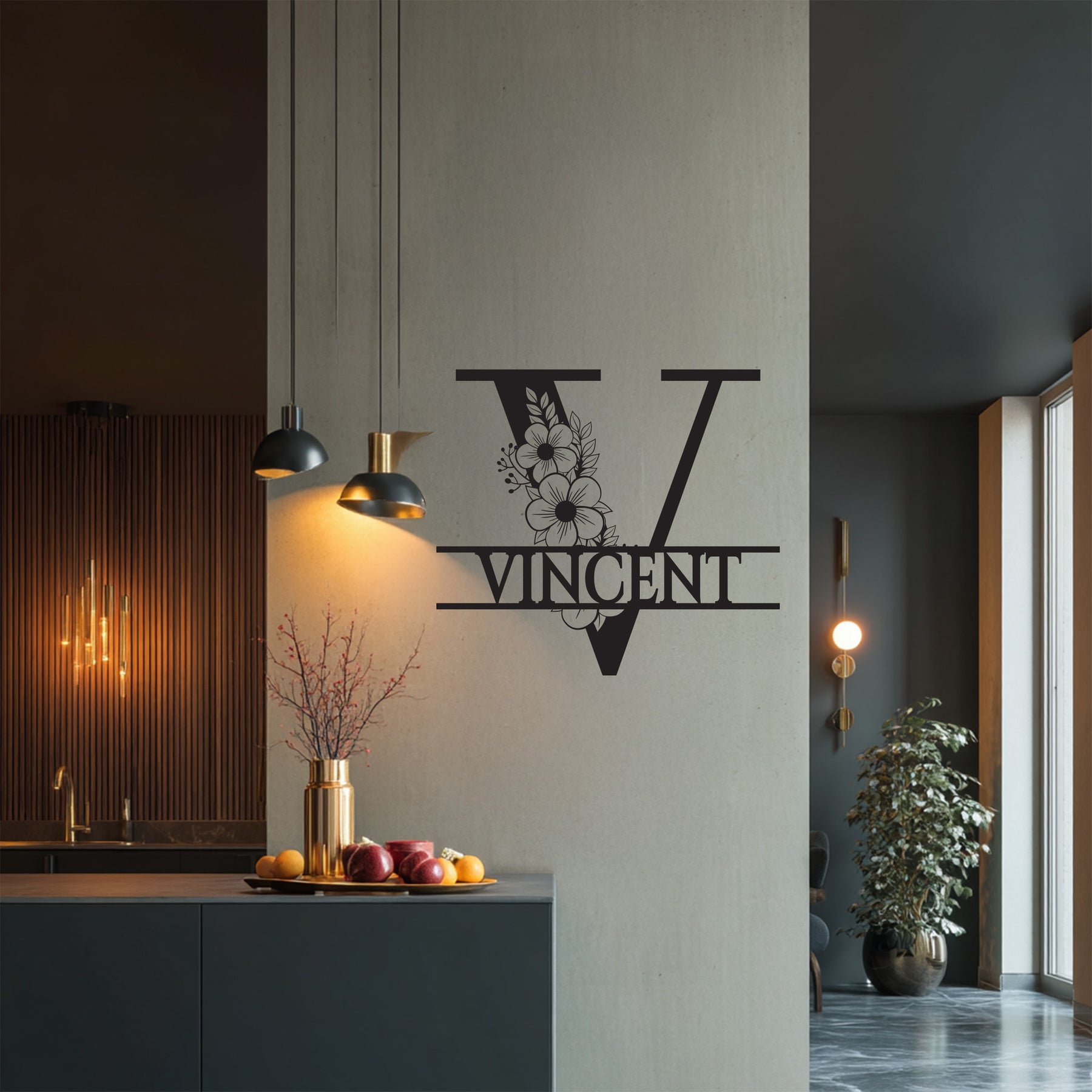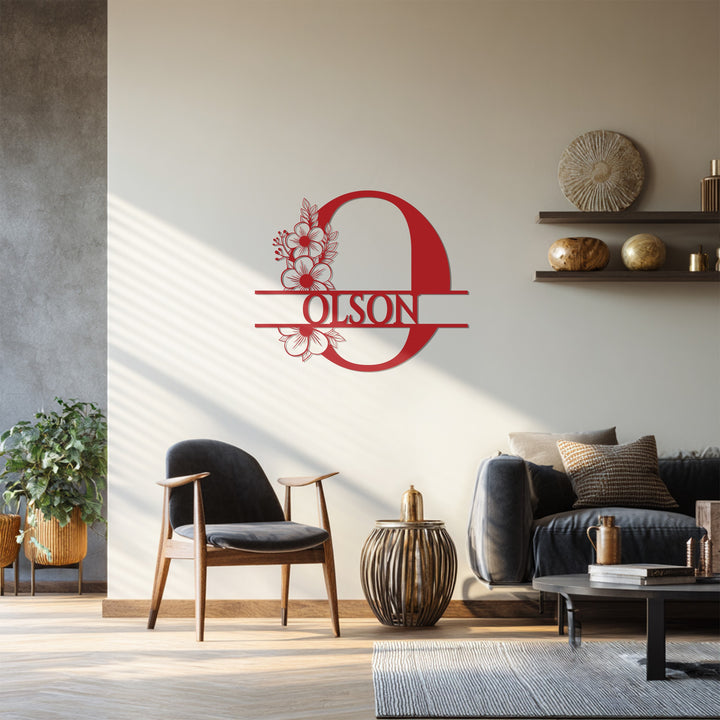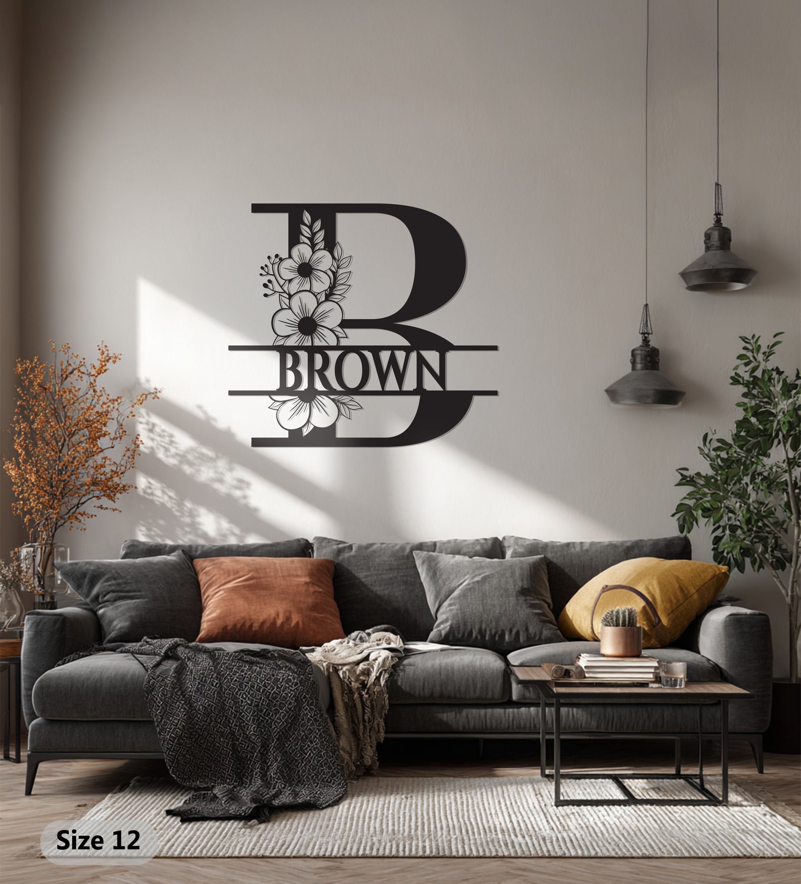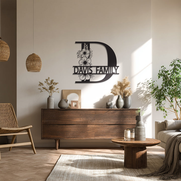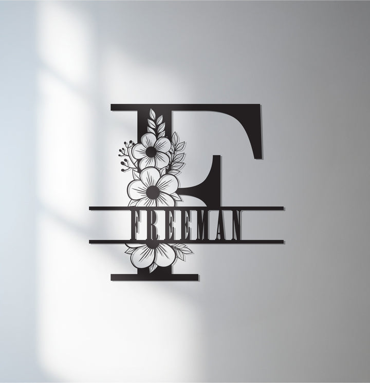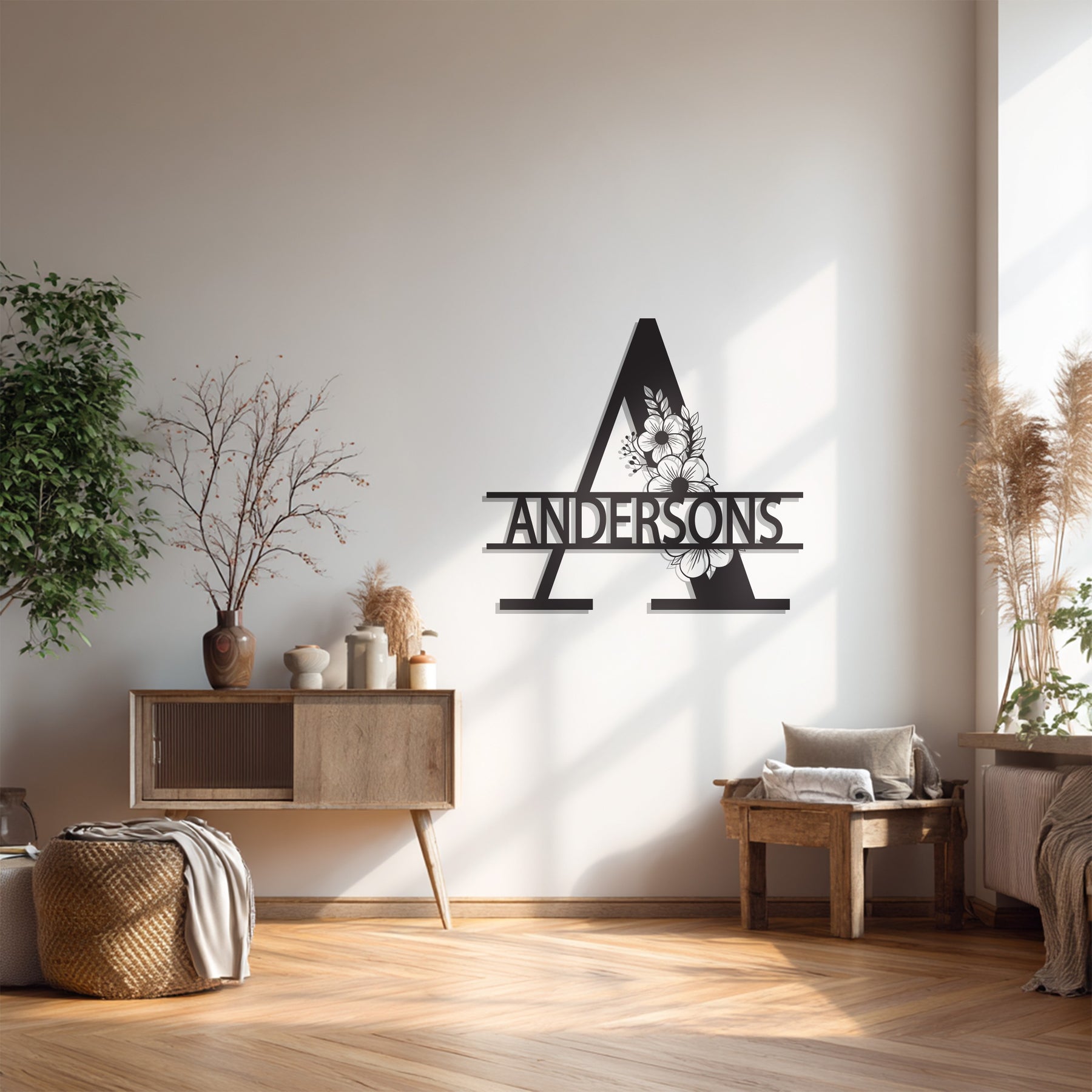 Floral Family Name Metal Wall Art – Custom Monogram Sign