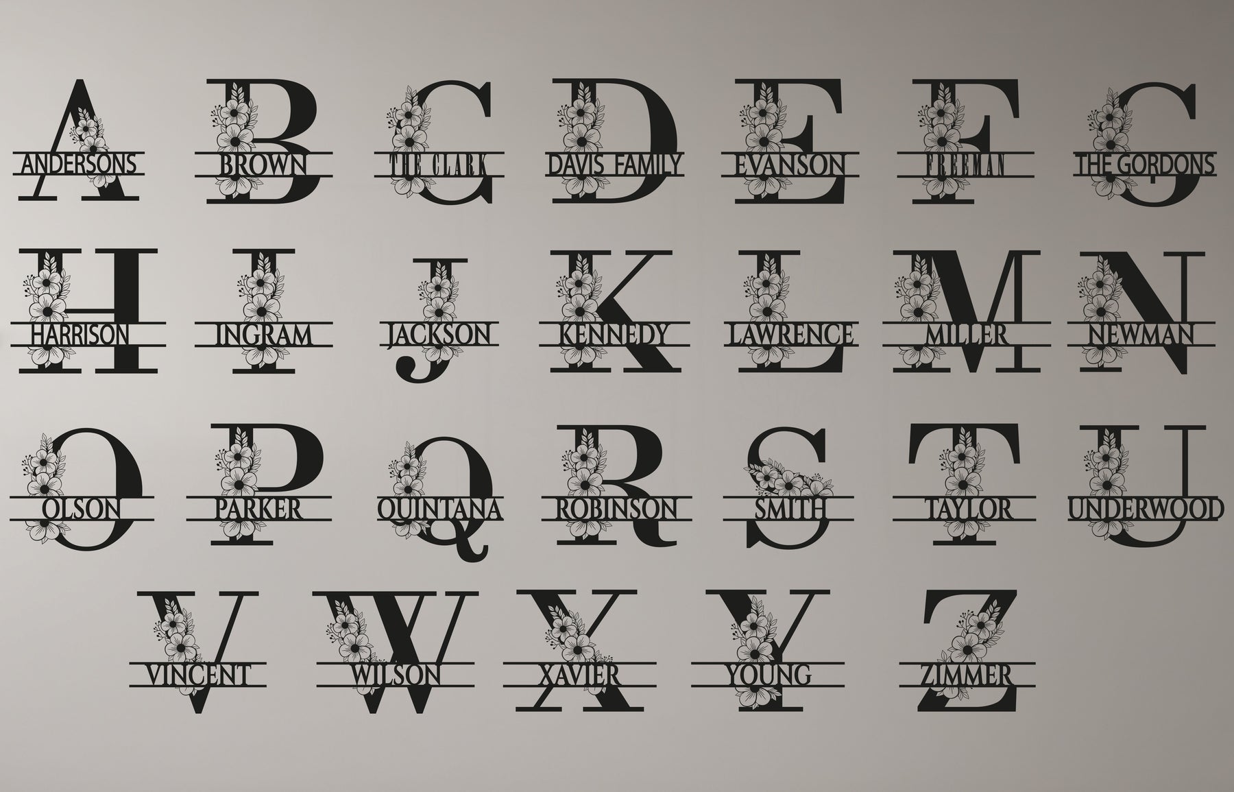 Celebrate elegance and identity with the Floral Family Name Metal Wall Art – Custom Monogram Sign. This beautifully designed piece showcases a bold initial intertwined with intricate floral patterns and your personalized family name at the center. The perfect balance between strength and delicacy, it enhances any space with sophistication.