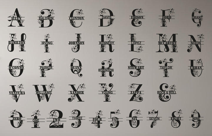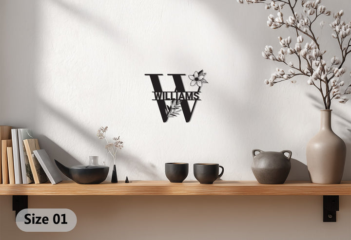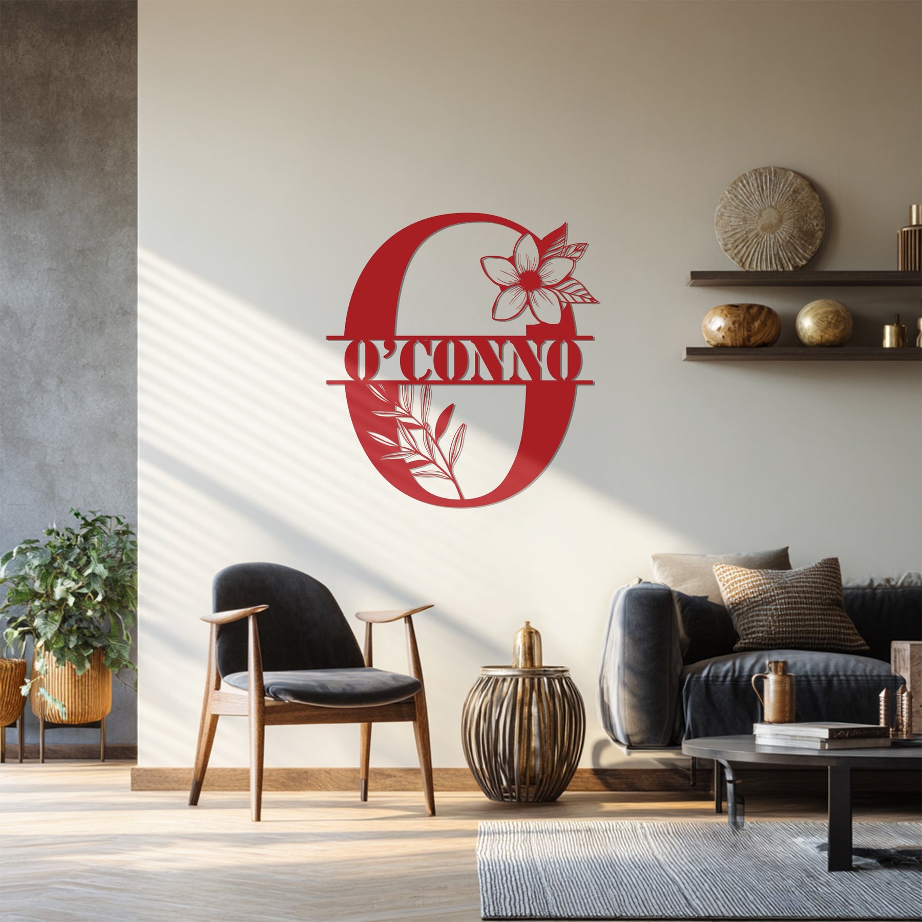 Add a refined and artistic touch to your space with the Floral Monogram Metal Wall Art – Personalized Name Sign. Featuring an elegant initial adorned with delicate floral accents and your custom family name across the center, this piece combines modern minimalism and natural beauty in perfect harmony.