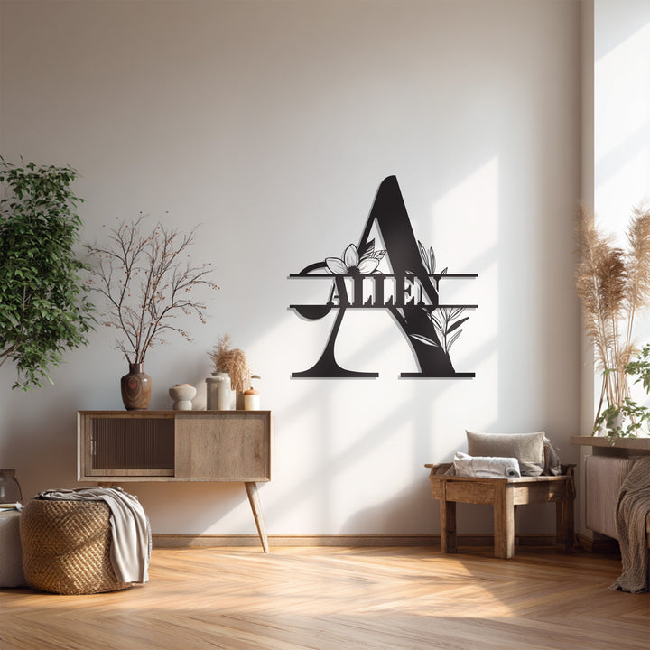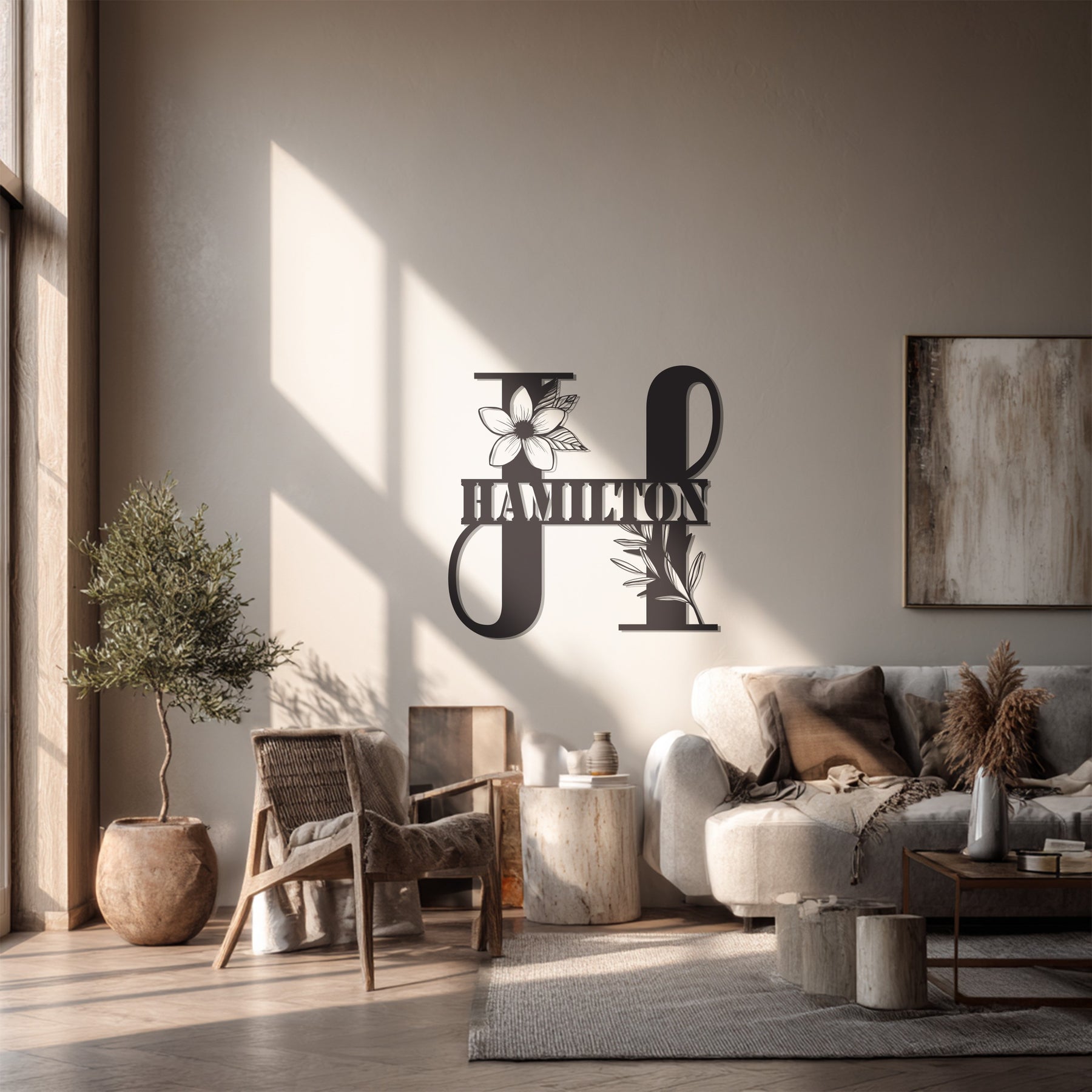 Floral Monogram Metal Wall Art – Personalized Name Sign