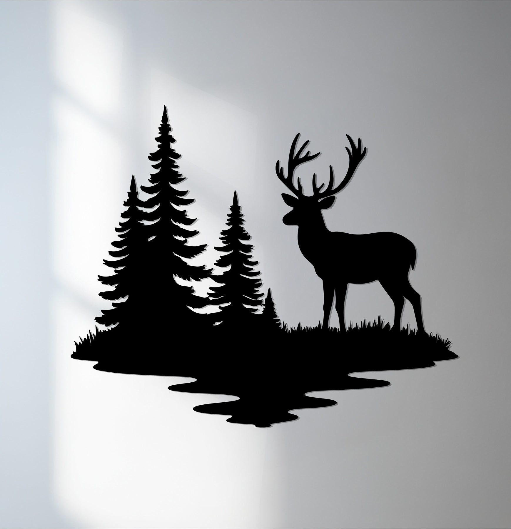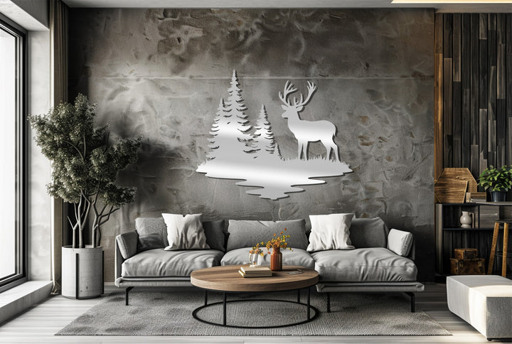 Forest Reflection Deer Metal Wall Art – Rustic Nature Décor
