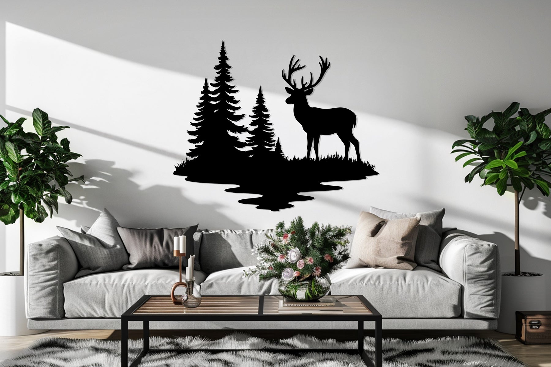 Bring the peace and power of the wilderness into your living space with the Forest Reflection Deer Metal Wall Art. This stunning piece showcases a majestic deer standing proudly beside pine trees, beautifully mirrored on the ground — symbolizing balance, freedom, and the calm of nature.
