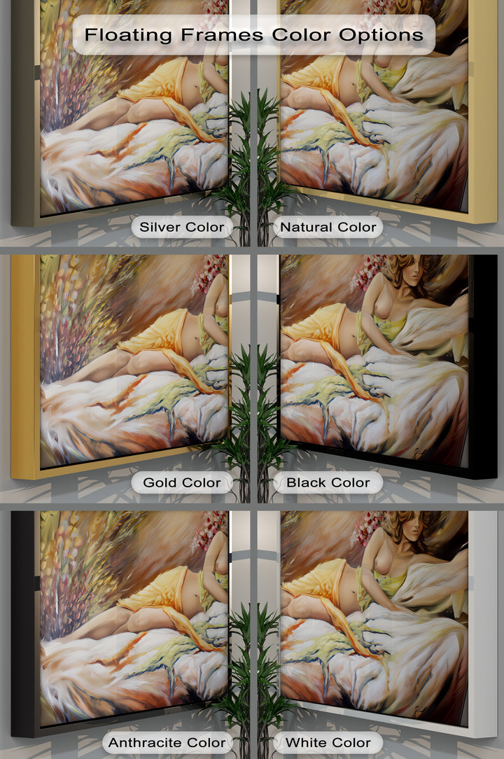 Our framed canvas wall art features a 3.5 cm (1.38 inch) thick floating frame, creating a striking depth effect that elevates your artwork with a luxurious, gallery-quality appearance. Available in multiple color options, the frame adds bold definition and a modern touch to any space.