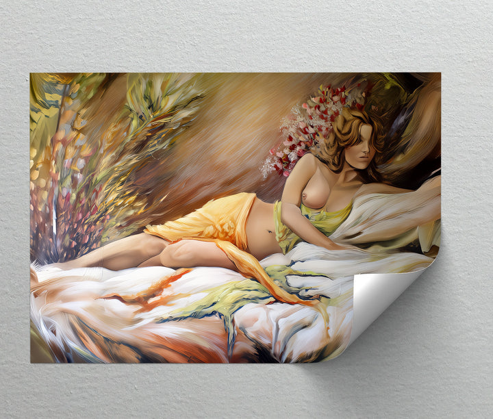 Printed on archival museum-grade canvas, this large canvas print radiates with rich texture, perfect for art lovers who appreciate romantic nude artwork, fine art erotica, or vintage-inspired bedroom décor. Its vivid yet delicate palette evokes feelings of serenity and gentle passion.