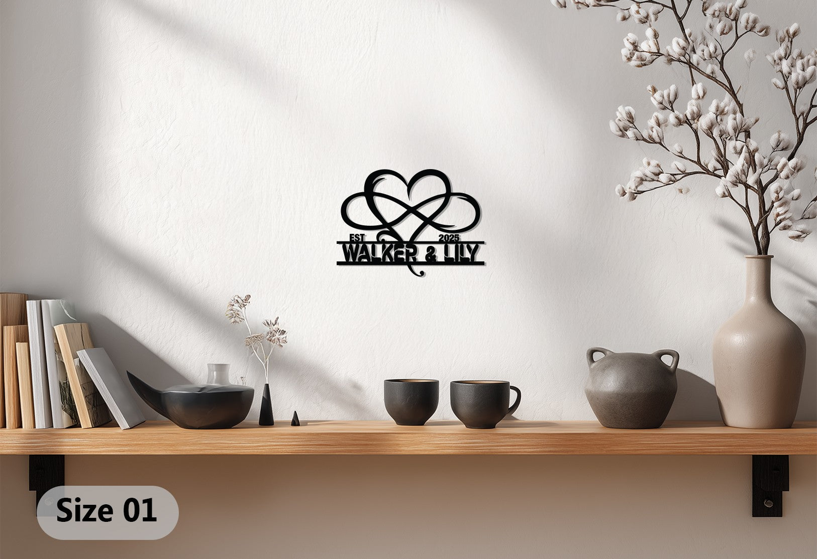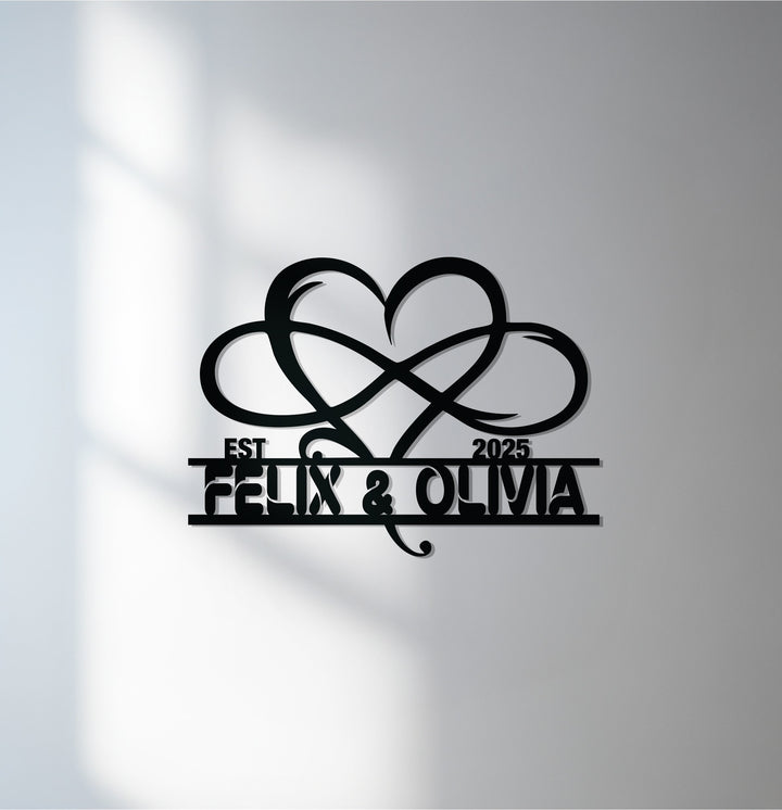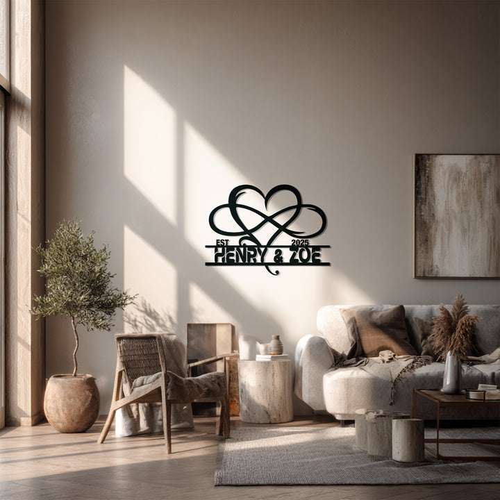 Henry & Zoe Infinity Heart Metal Wall Art – Personalized Couple Name Decor