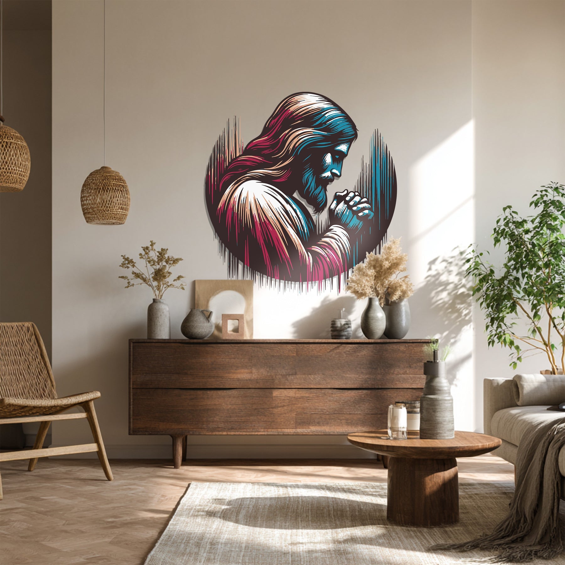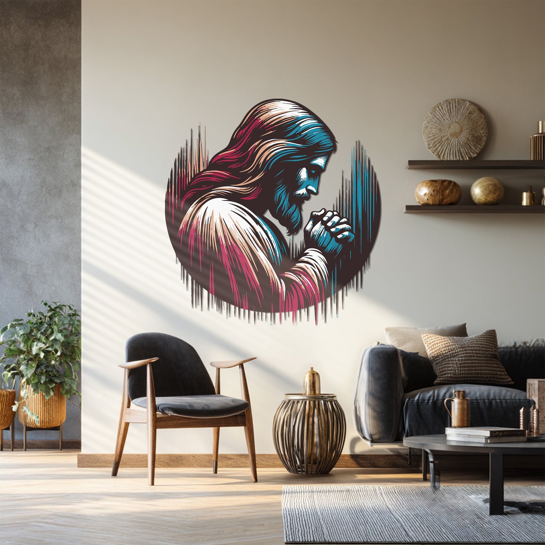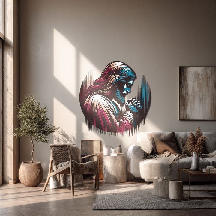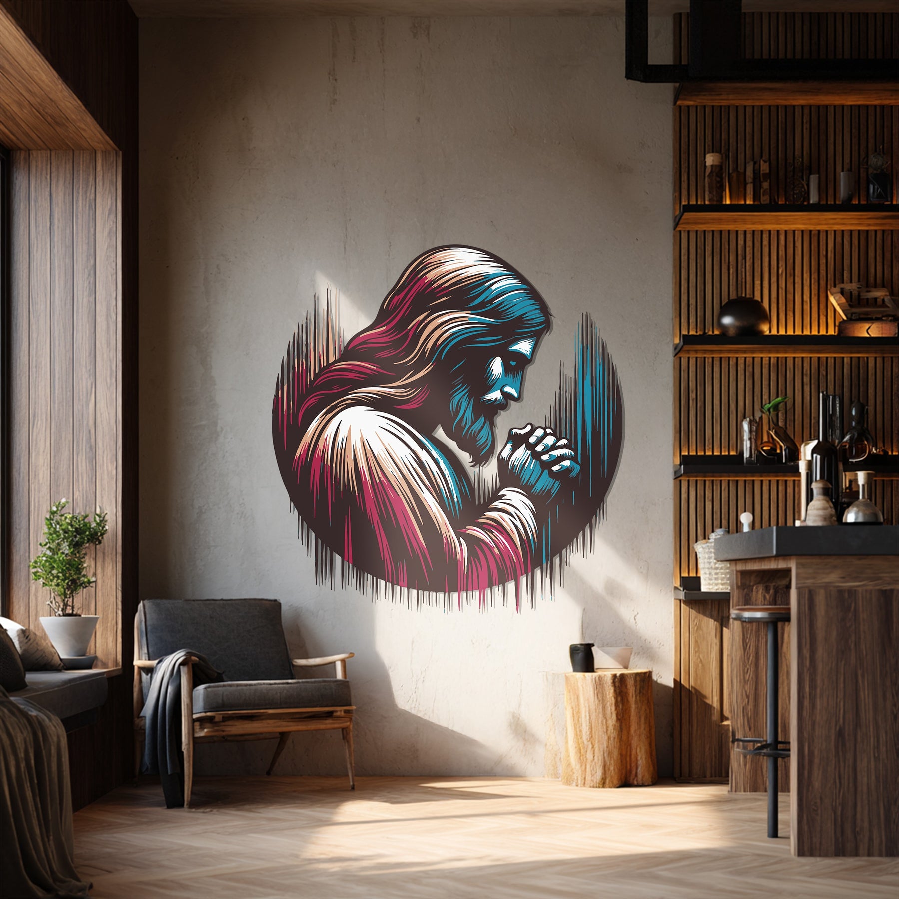 Jesus Praying Metal Wall Art – Sacred Spiritual Home Decor
