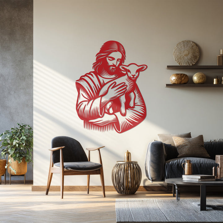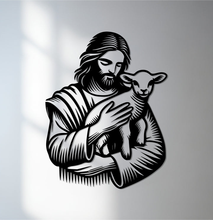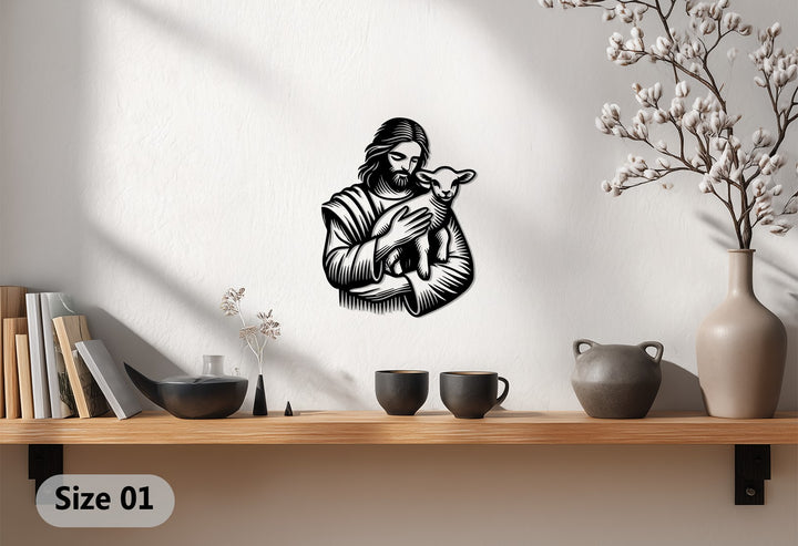 Jesus with Lamb – Christian Metal Wall Art