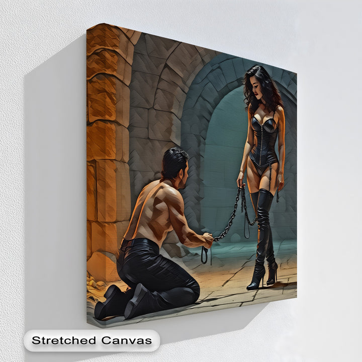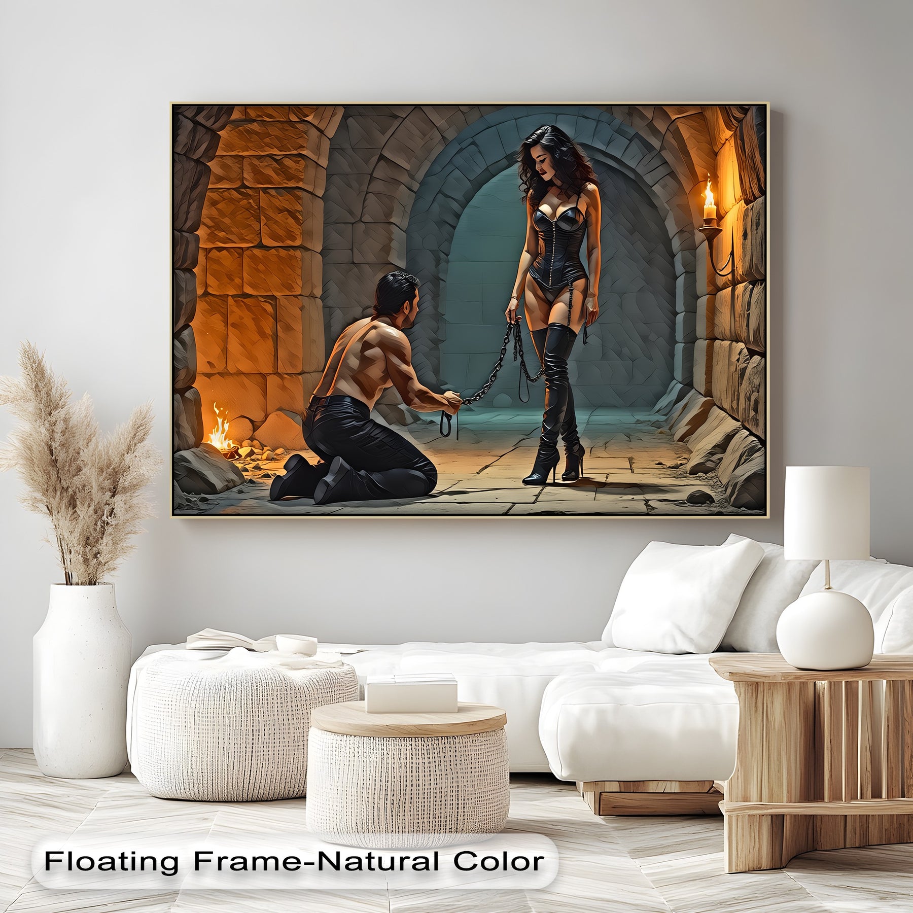 Perfect for bedrooms, studios, or intimate lounges seeking bold dominant-submissive canvas prints, BDSM erotic wall décor, or oversized framed artwork that makes a statement.