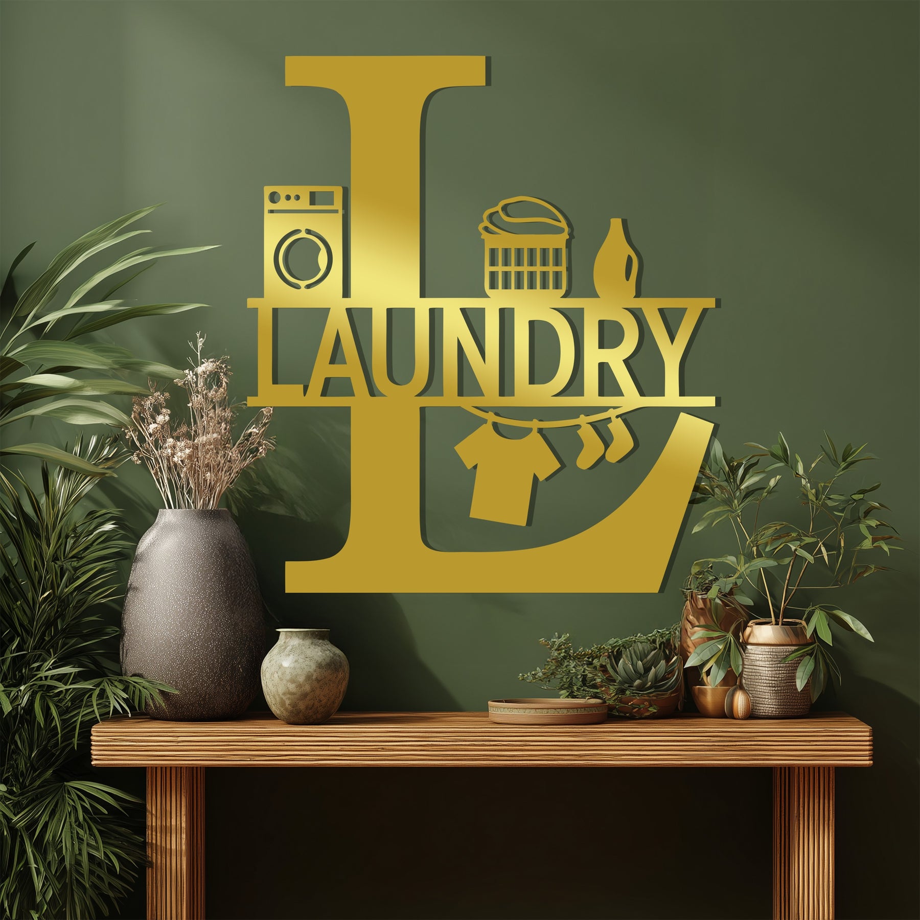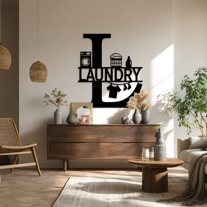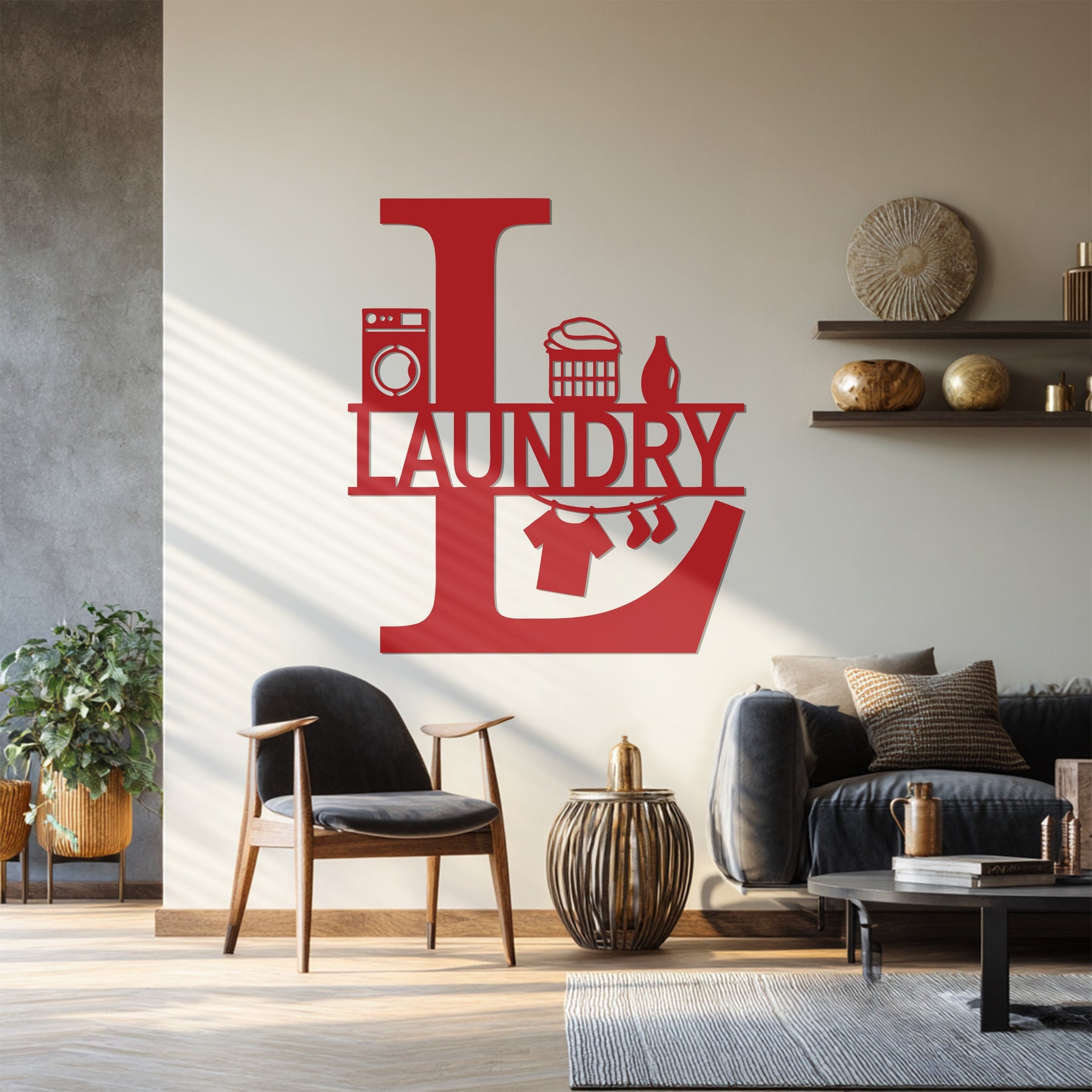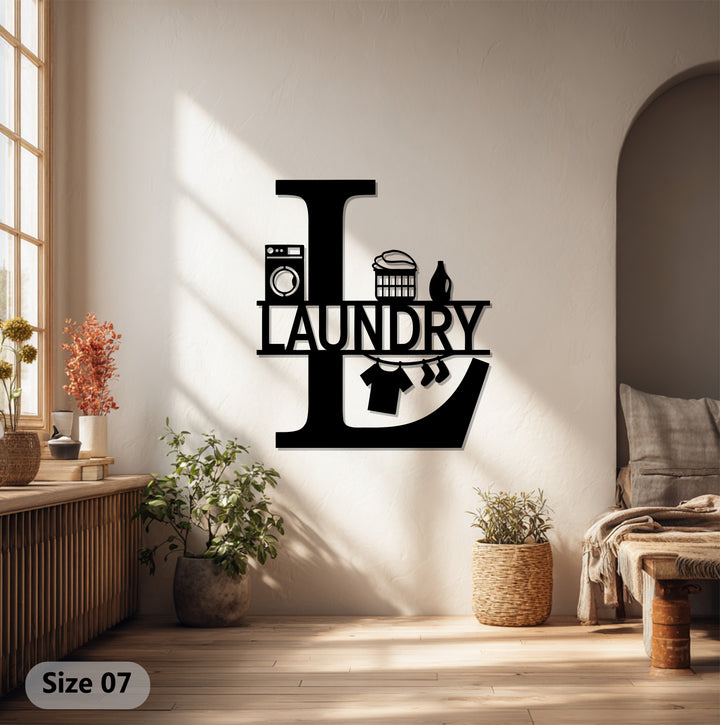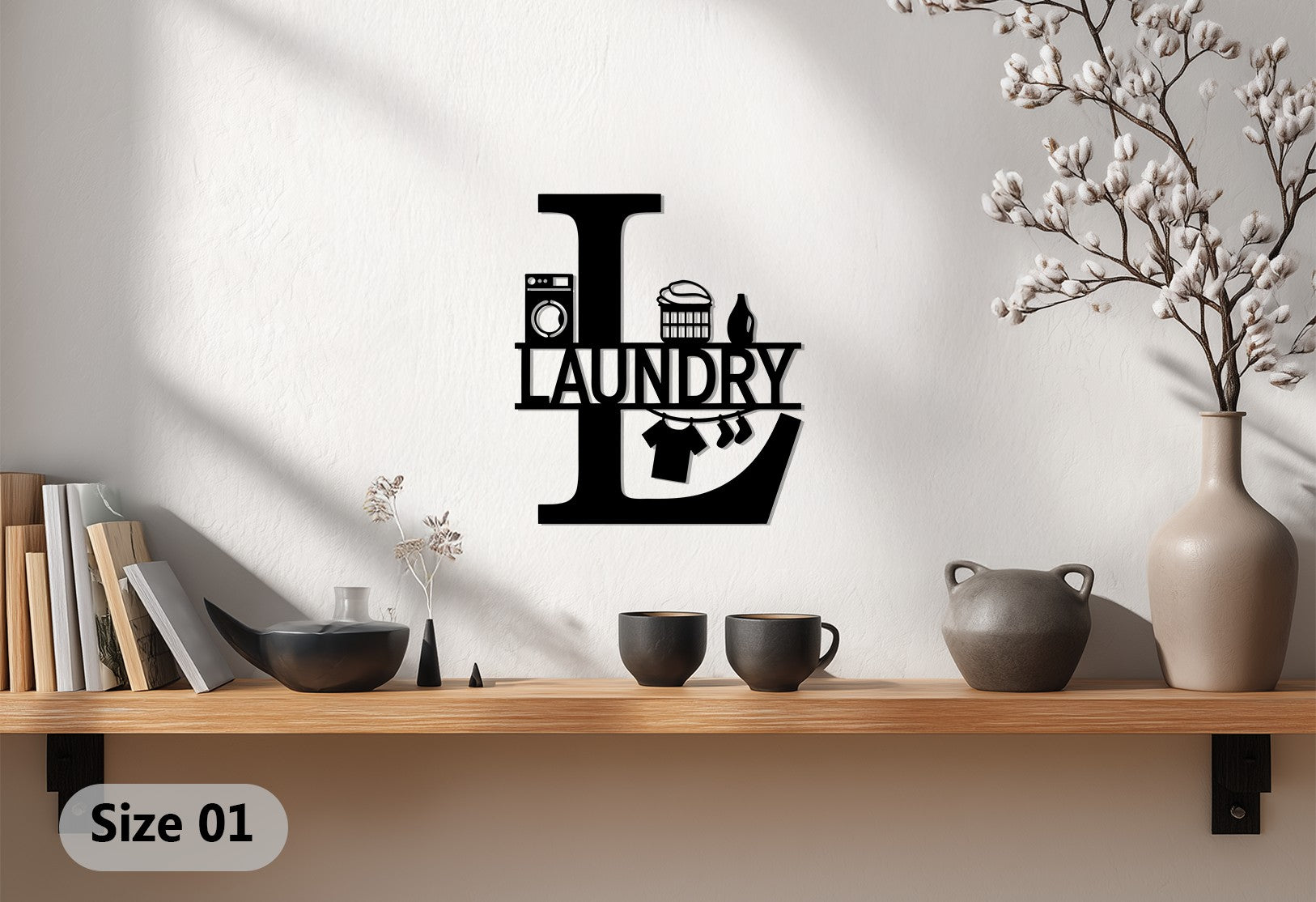 Add charm and order to your laundry space with the Laundry Room Metal Wall Art, designed in the elegant shape of the letter “L.” This creative design features a washing machine, laundry basket, detergent bottle, and hanging clothes — turning a simple utility room into a stylish, organized space.