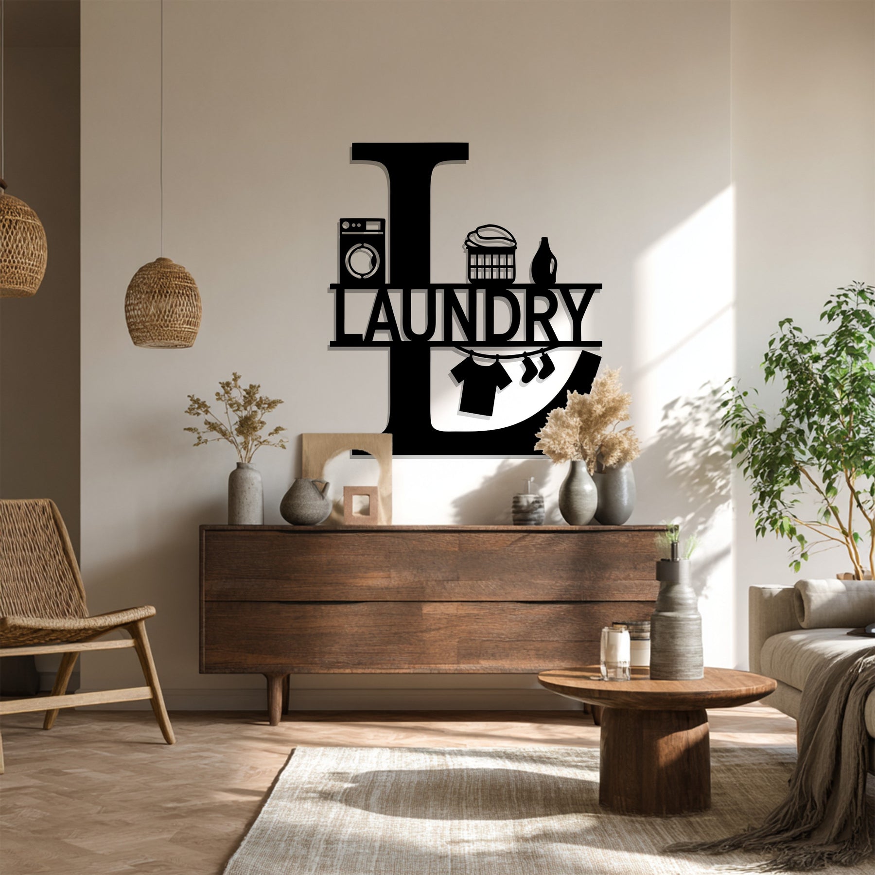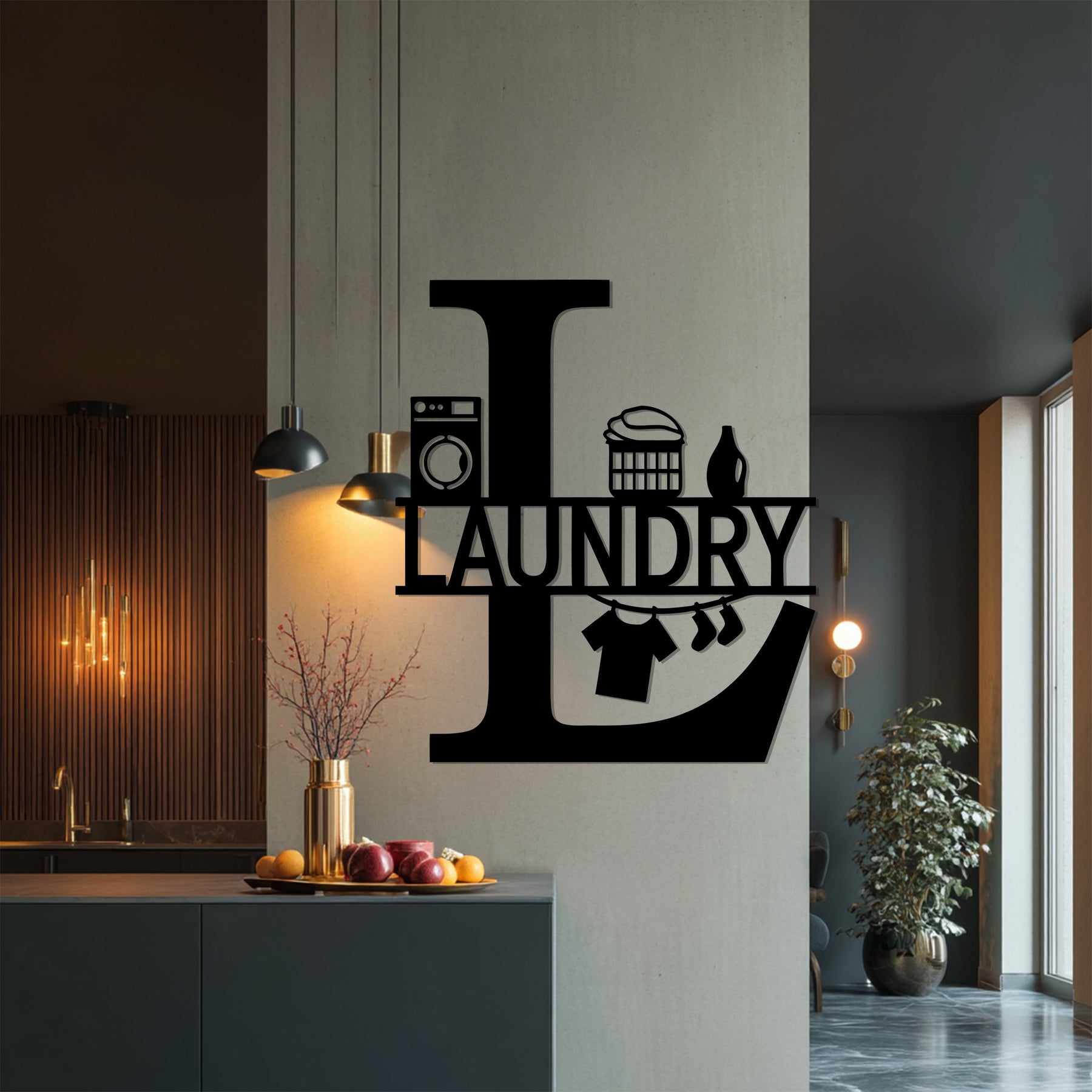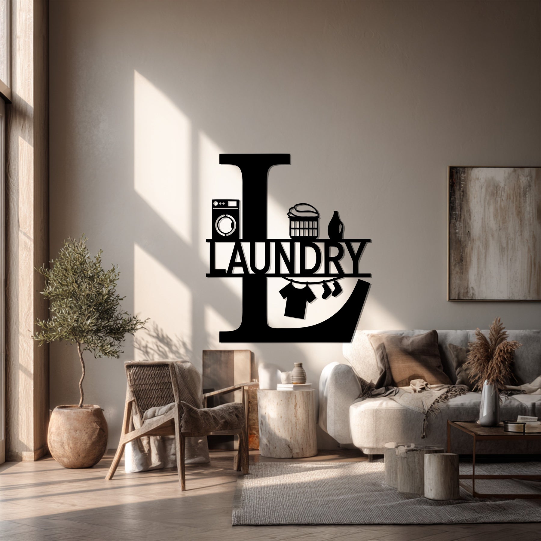 Laundry Room Metal Wall Art – Modern Black Home Decor