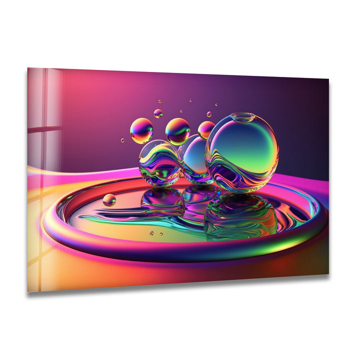 Luminous Orb Cascade – Neon Chromatic Sphere Sculpture Glass Wall Art
