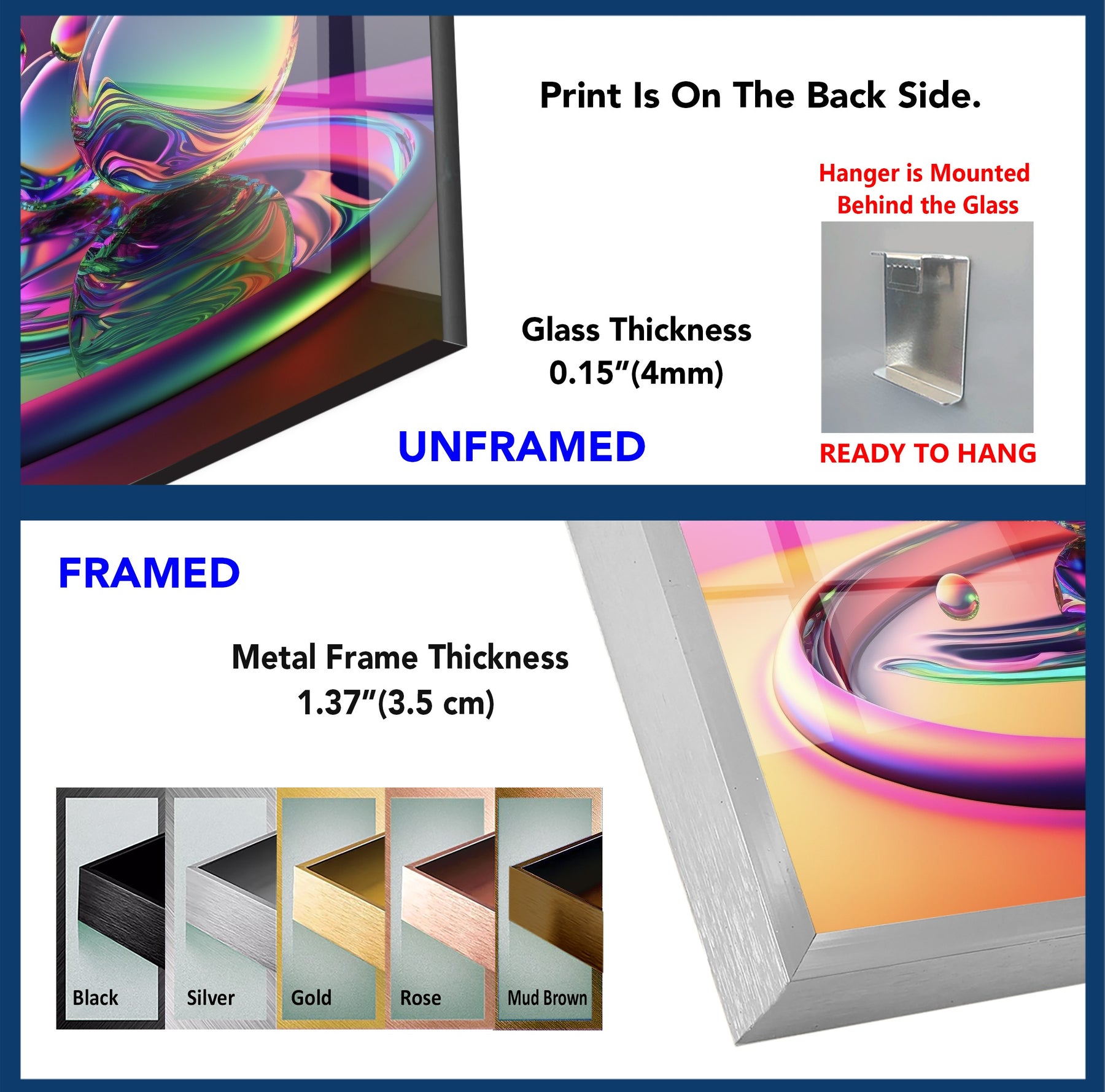 Printed on ultra-gloss premium tempered glass, every neon reflection, smooth curvature, and liquid ripple is captured with depth and precision. Ideal for living rooms, gaming setups, content creator studios, luxury offices, lounges, and upscale commercial interiors, this artwork injects vibrant futuristic energy and high-end aesthetic impact.