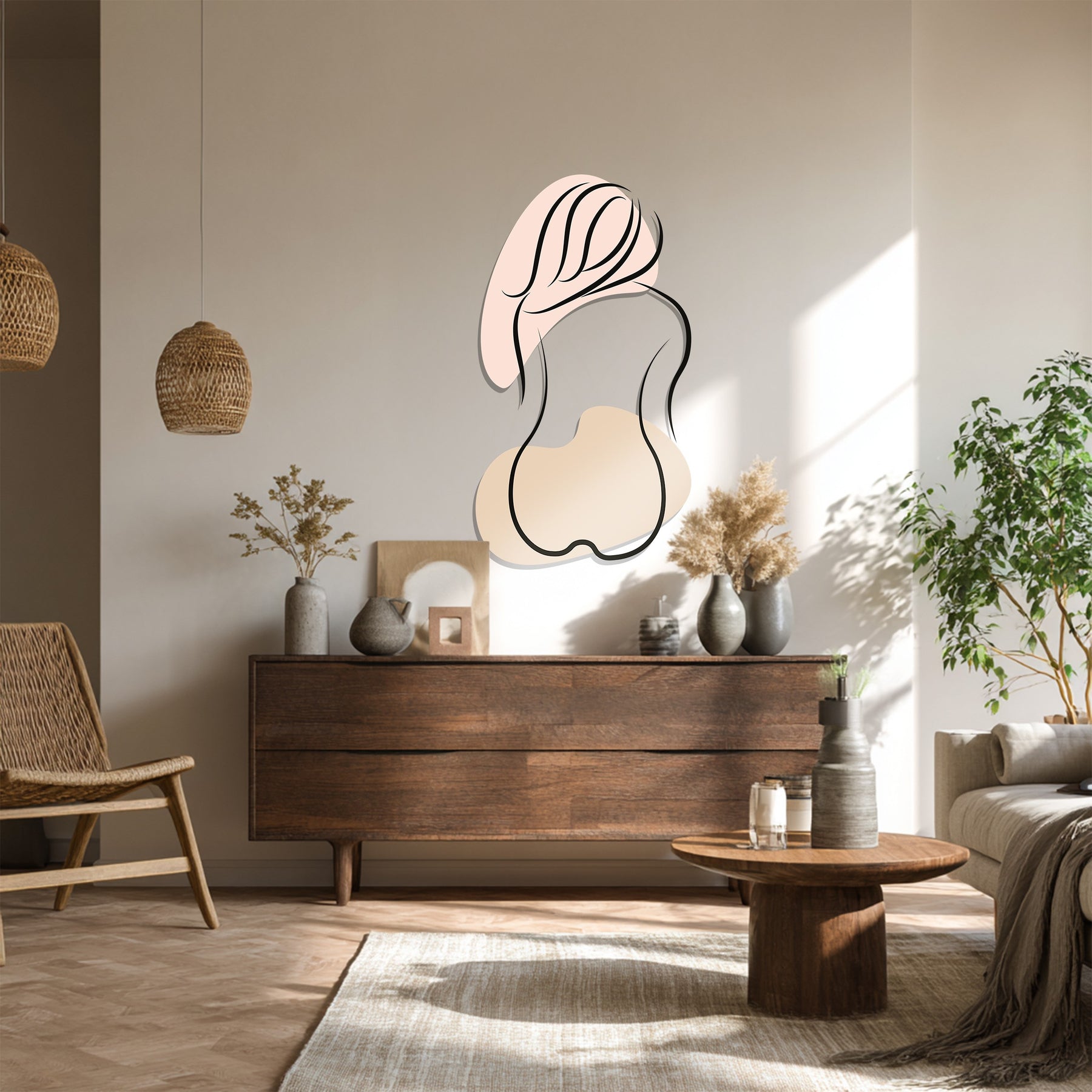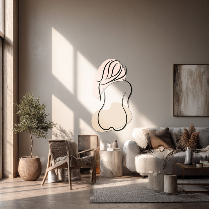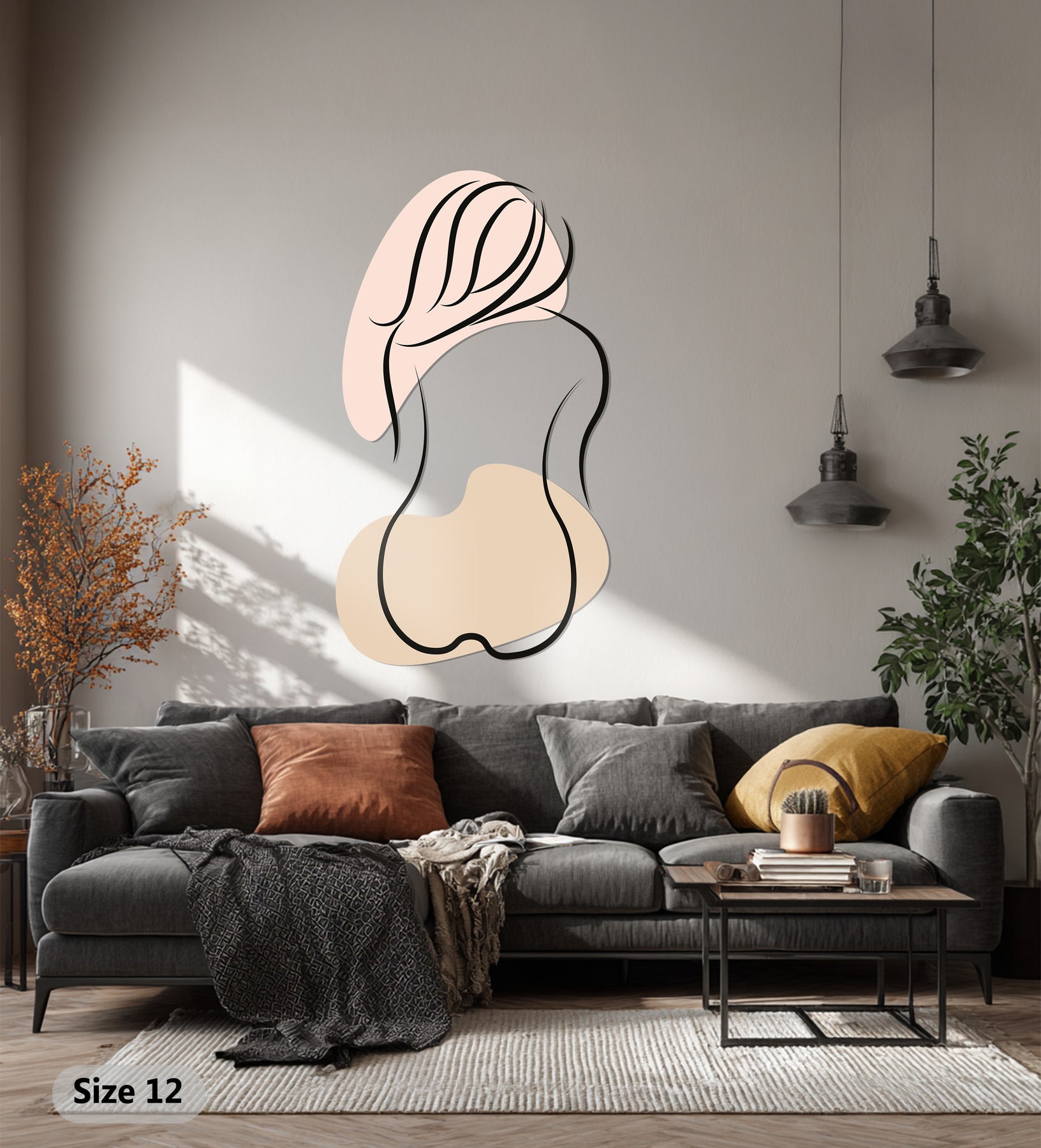 Embrace elegance through simplicity with the Minimalist Female Silhouette Metal Wall Art, a refined representation of beauty and form. This contemporary piece captures the grace of the feminine figure with fluid black lines and soft neutral tones of beige and blush, creating a serene visual harmony perfect for modern living rooms, bedrooms, or art-inspired interiors.