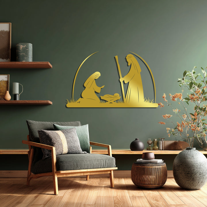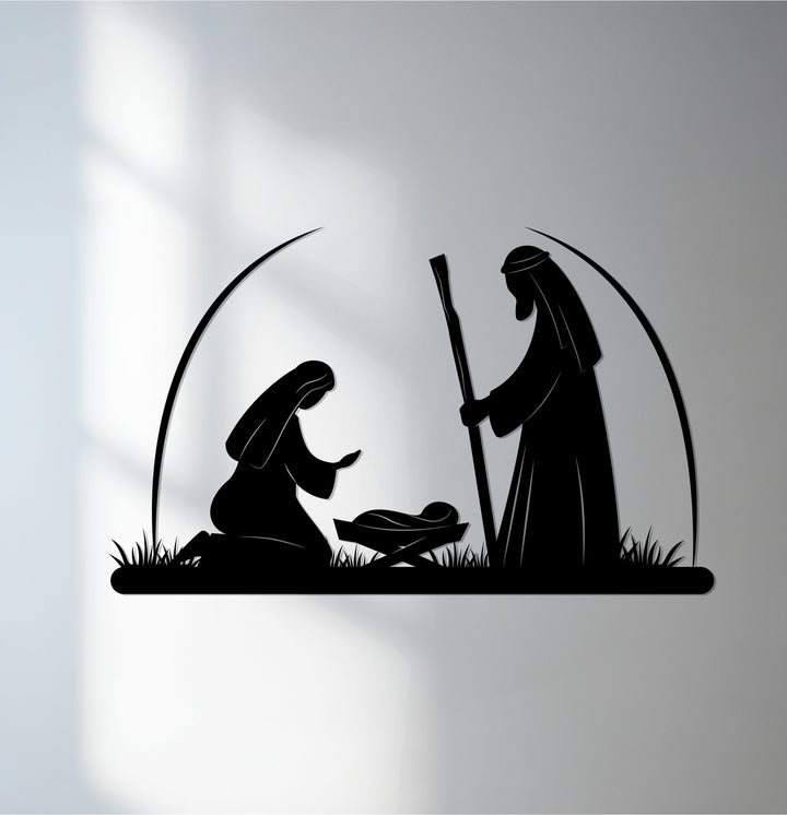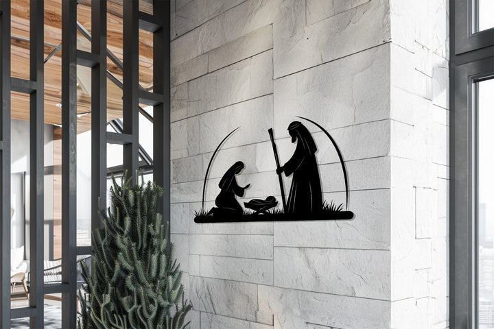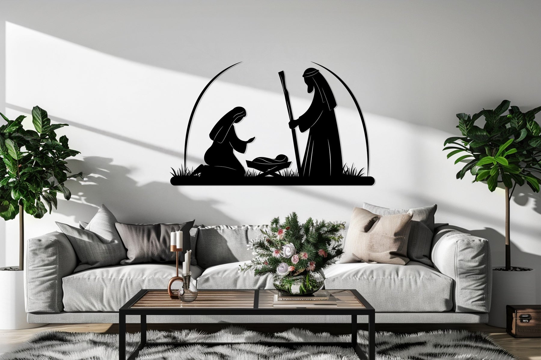 Celebrate the spirit of Christmas all year round with the Nativity Scene Metal Wall Art. This elegant silhouette depicts the holy family—Mary, Joseph, and baby Jesus—under a gentle arch symbolizing divine protection and peace. Crafted with attention to sacred detail, it brings warmth, serenity, and faith to any home.