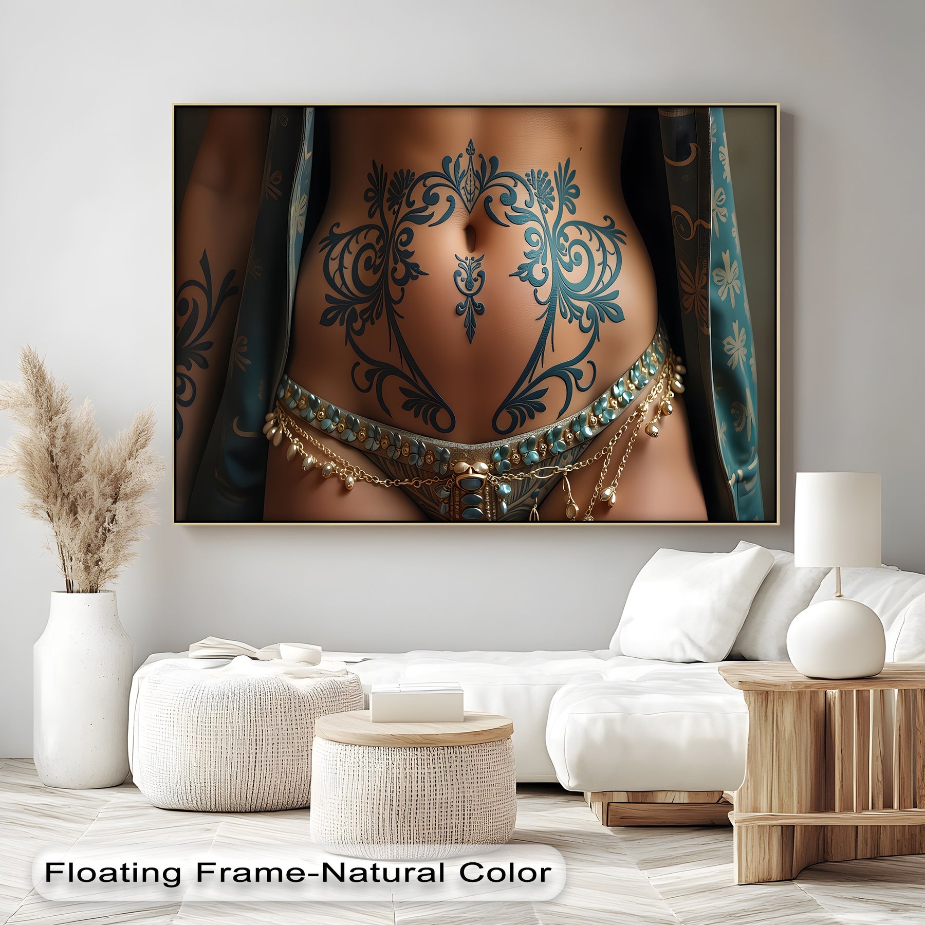 Whether you're curating a provocative gallery wall, designing a moody interior, or simply drawn to the sacred beauty of body art, this framed canvas wall art is both empowering and seductive.