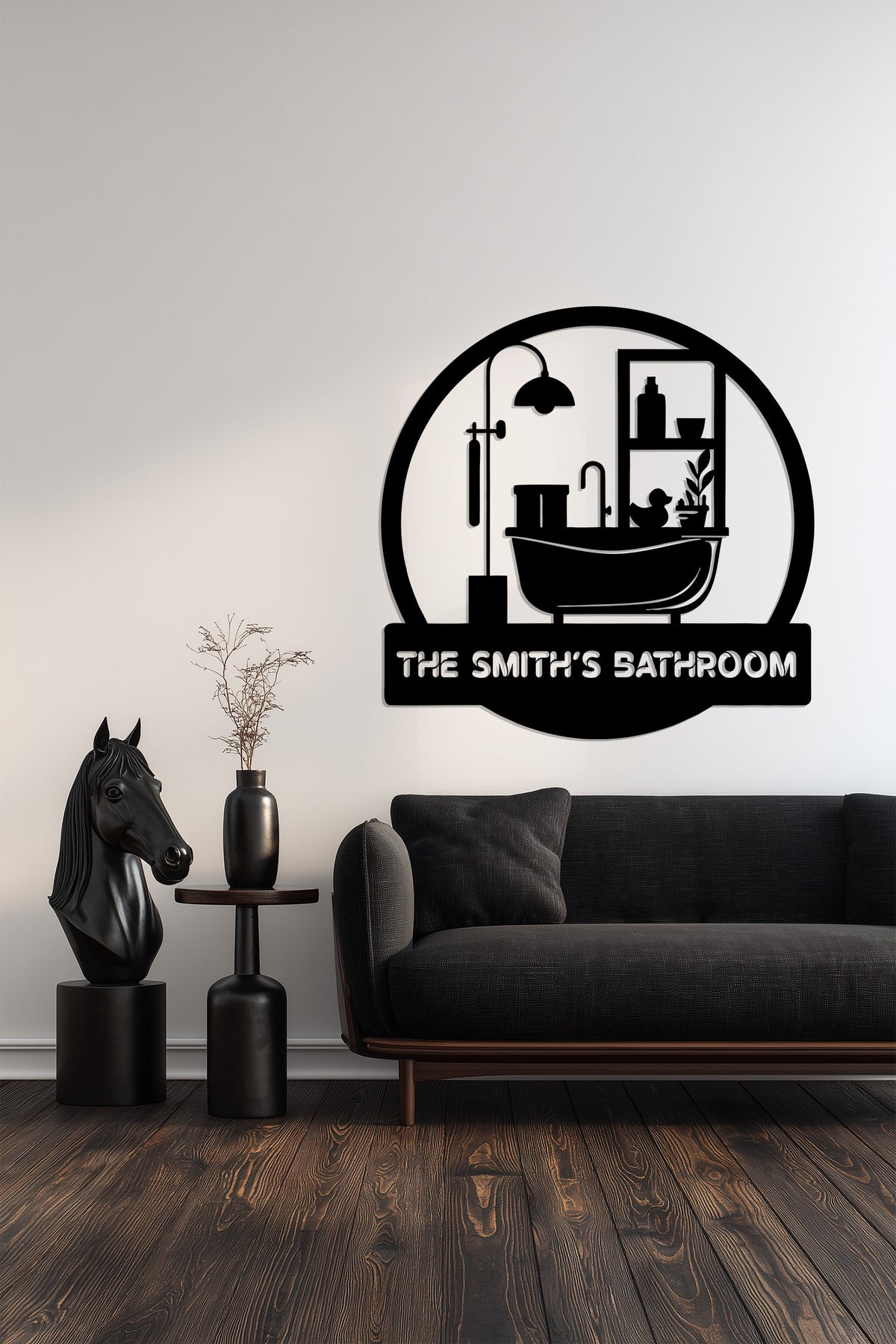 Perfect for families and guest bathrooms, this piece can be customized with your name or any text — like “The Smith’s Bathroom” — to make your space truly unique. The black matte finish gives it a sleek, timeless look that complements both modern and classic interiors.