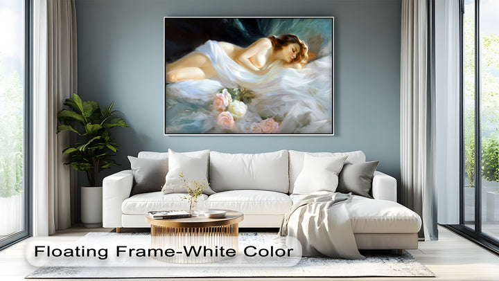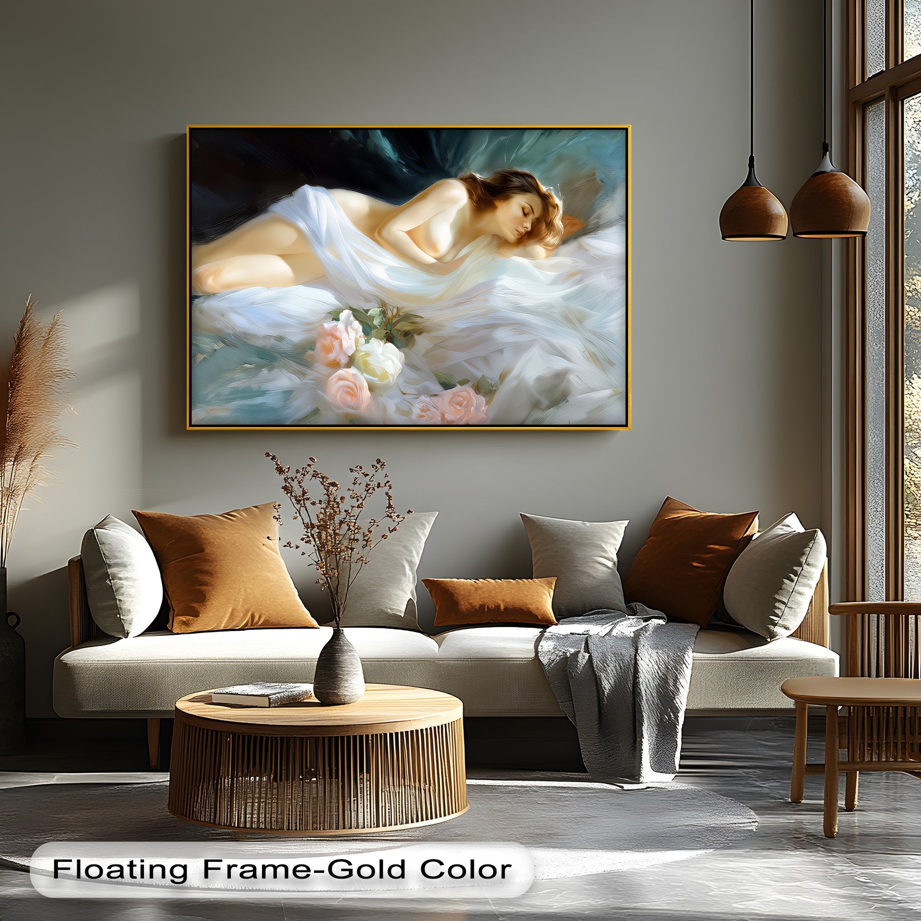Petal Slumber – Framed Canvas Wall Art | Romantic Nude Canvas Print
