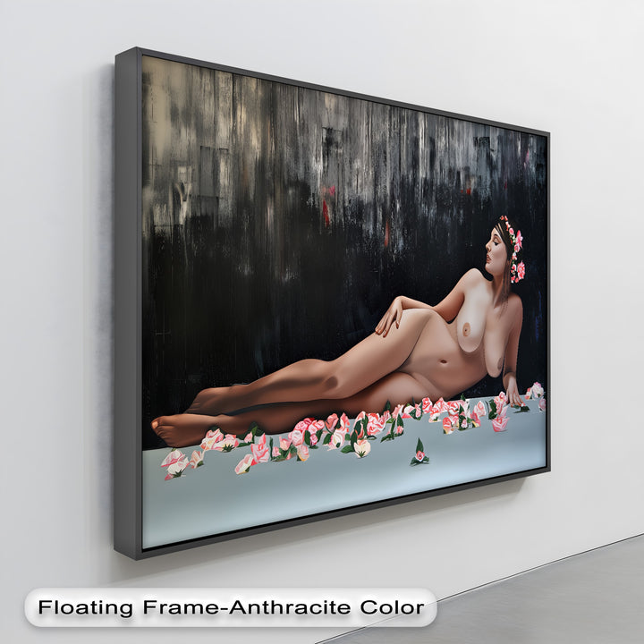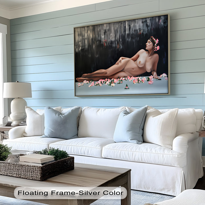 Petals of Grace – Reclining Nude Canvas Wall Art | Floral Erotic Print
