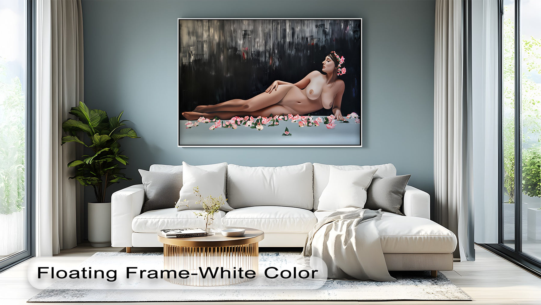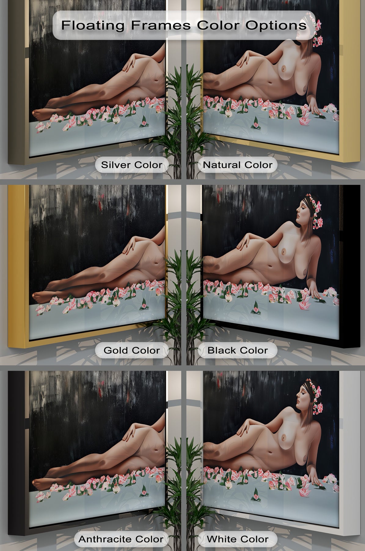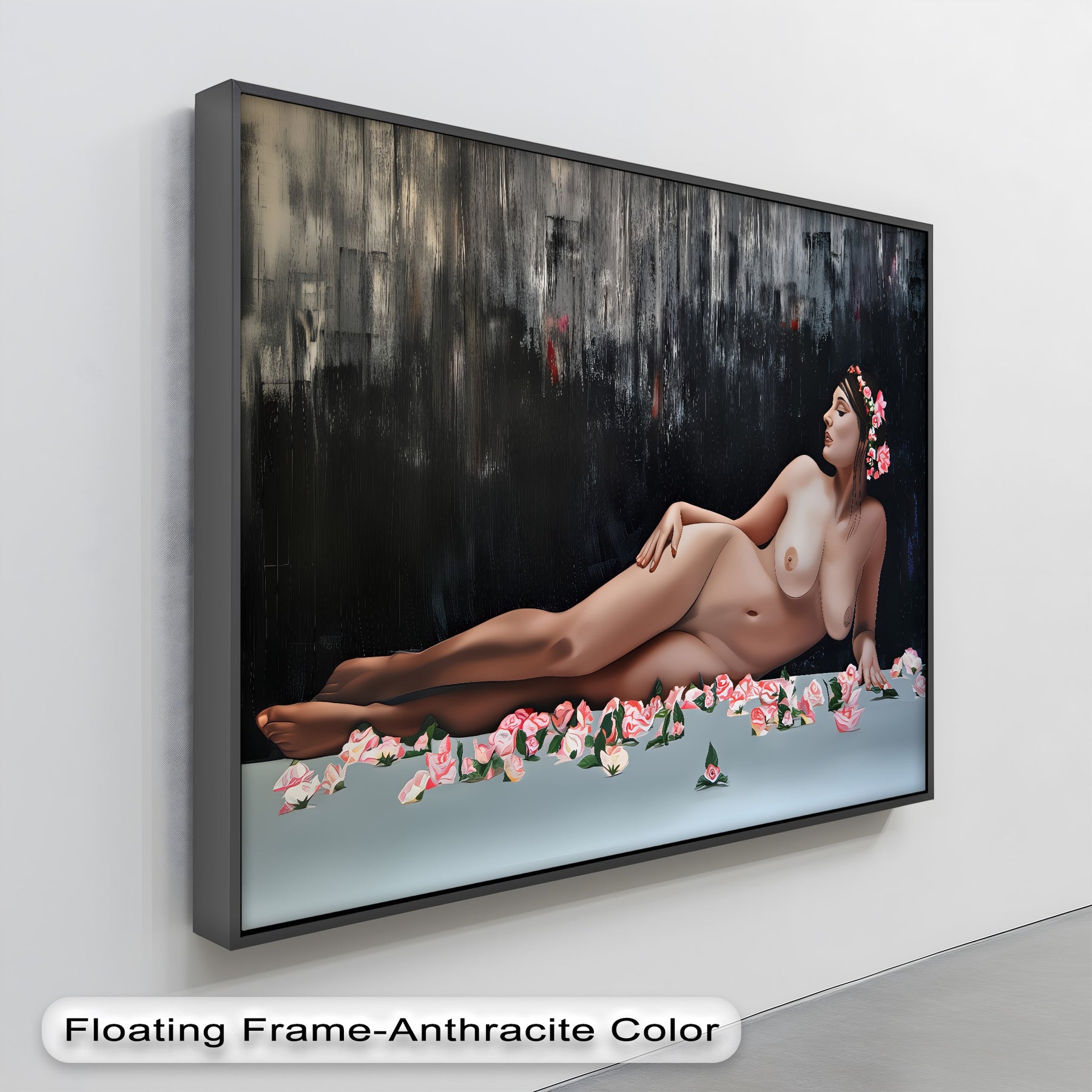 Ideal for bedroom canvas decor, gallery-style arrangements, or featured as horizontal canvas art in quiet corners, Petals of Grace radiates confidence, softness, and striking visual balance. A perfect piece for lovers of sensual artwork canvas and refined nude compositions.