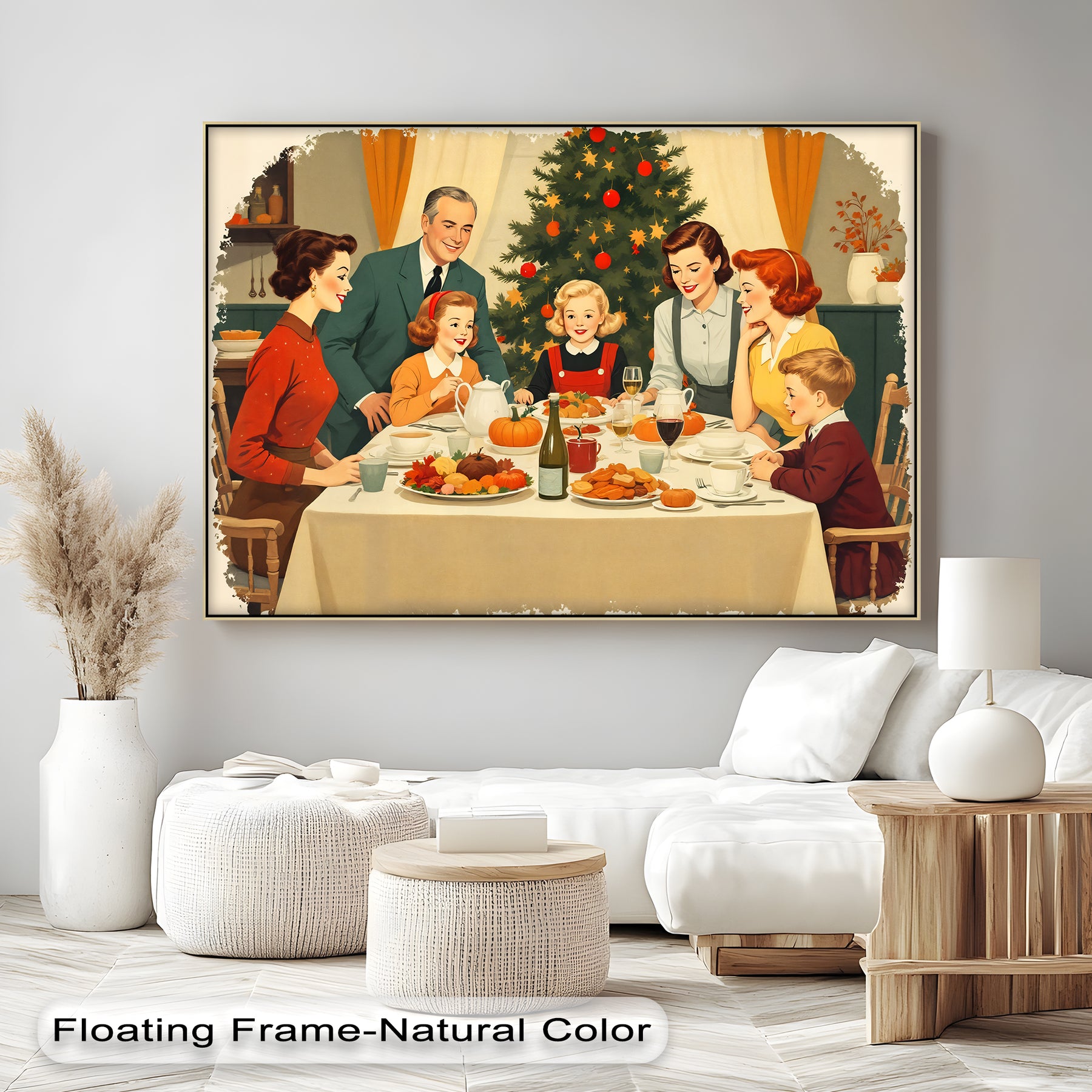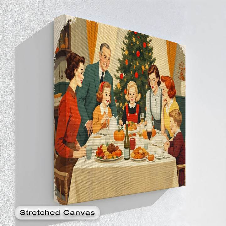 Retro Family Christmas Dinner Canvas Wall Art | Large Canvas