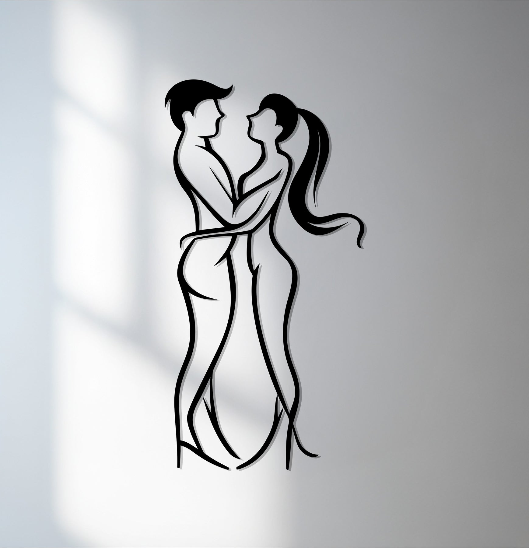 Romantic Embrace Metal Wall Art – Minimalist Love Couple Silhouette
