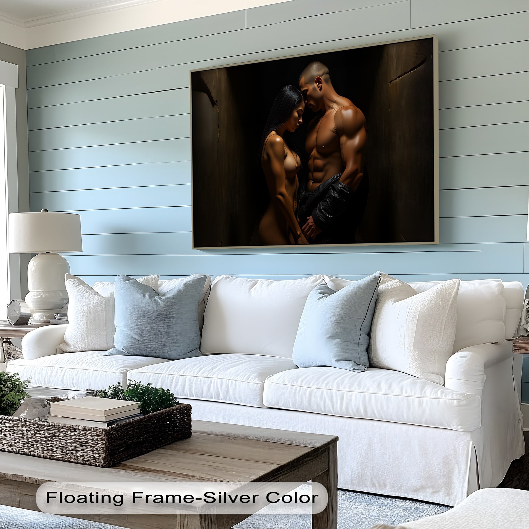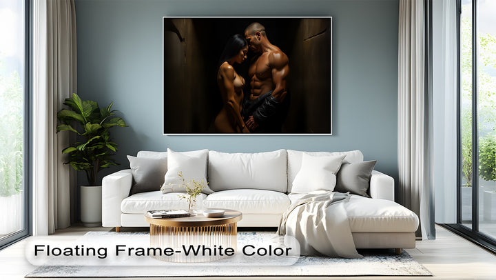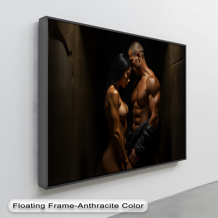 Shadowed Embrace captures a raw moment of intimacy and stillness in the dark. This evocative erotic canvas wall art features two figures suspended in silent connection, their bodies sculpted by light and shadow in a narrow corridor of secrecy. The composition is bold, magnetic, and deeply emotional—ideal for interiors that explore sensual canvas art and abstract human form.