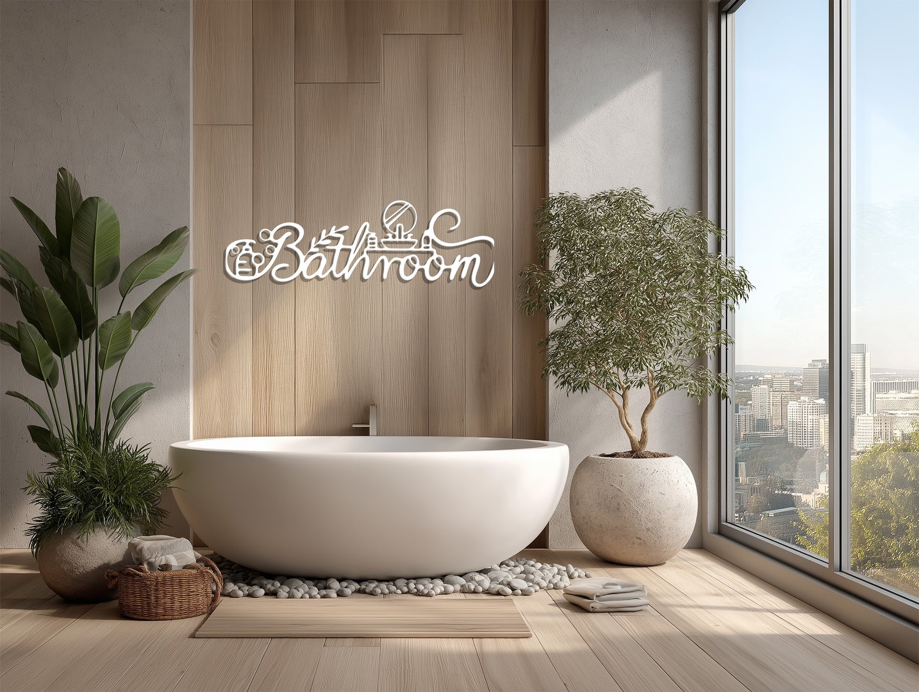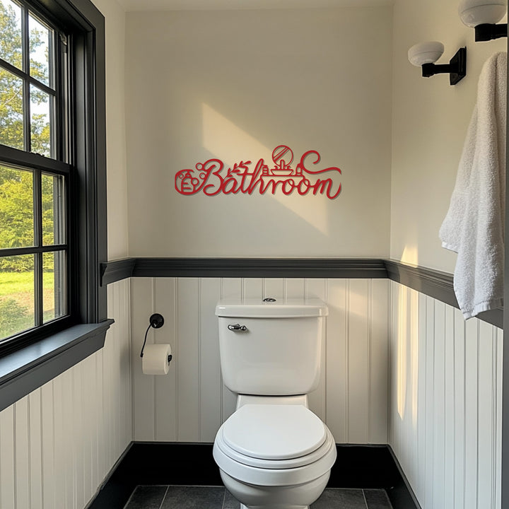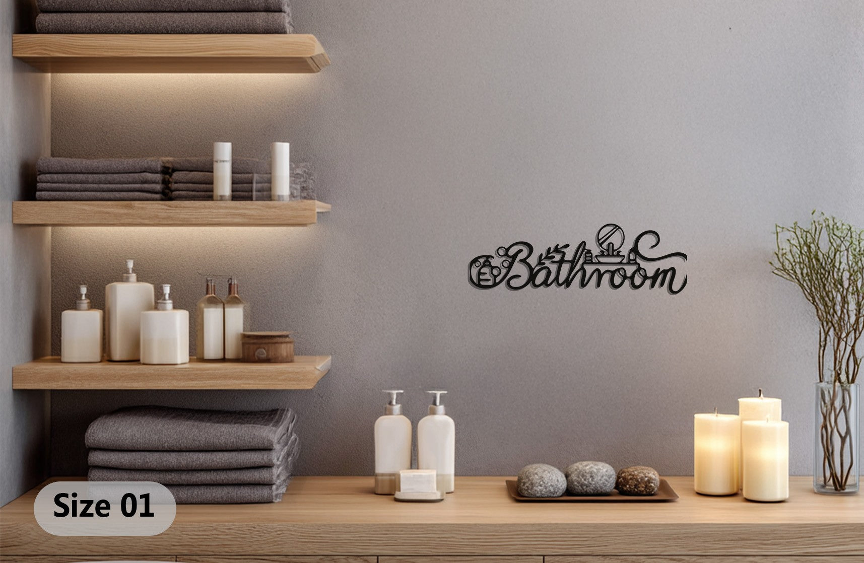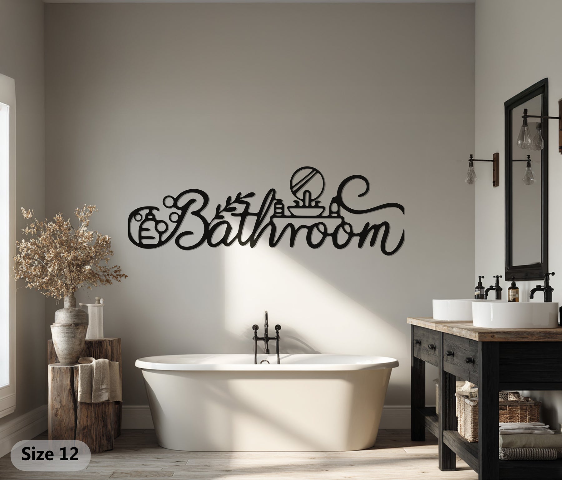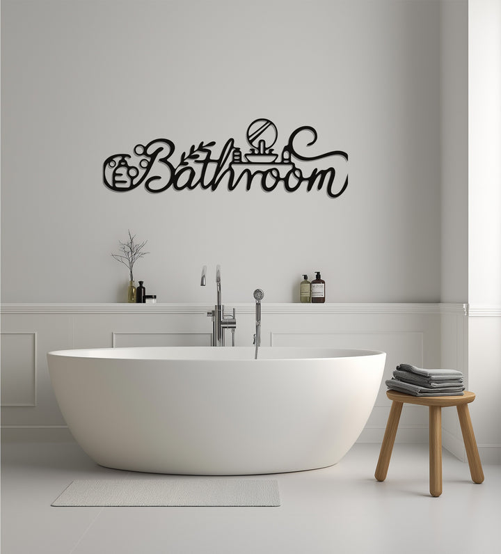 Stylish Script Bathroom – Modern Metal Wall Art Sign