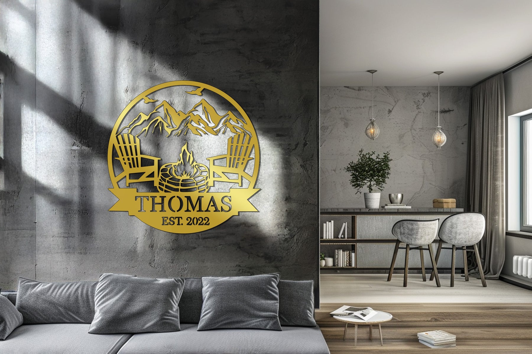 Thomas Firepit Metal Wall Art – Personalized Outdoor Family Name Sign