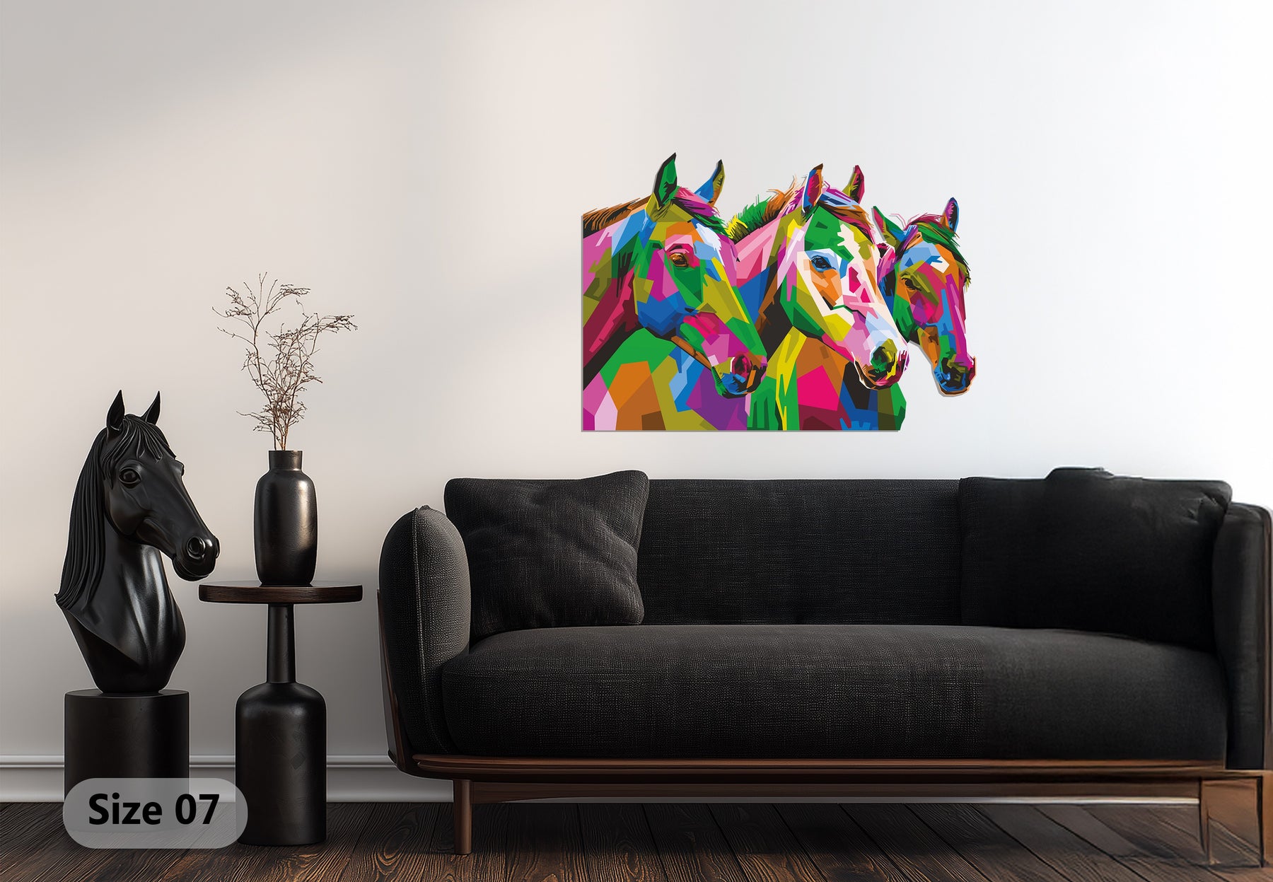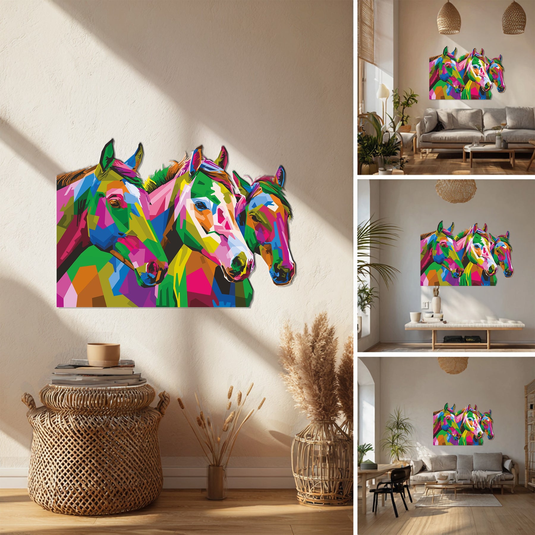 Ideal for living rooms, offices, or art-inspired interiors, this colorful horse metal wall decor captures motion and personality in every detail. Its polished metal surface and intense color palette create a premium look that transforms plain walls into a gallery-worthy statement.