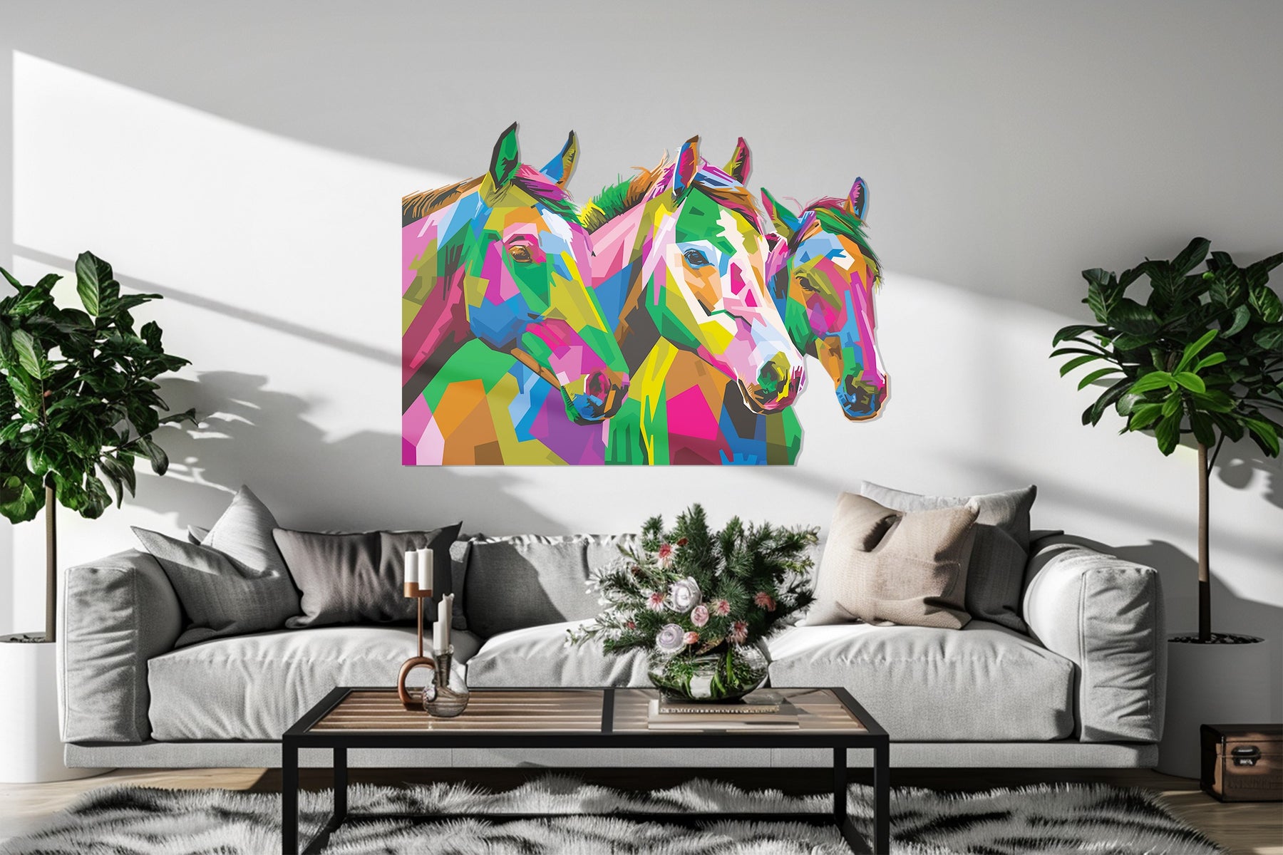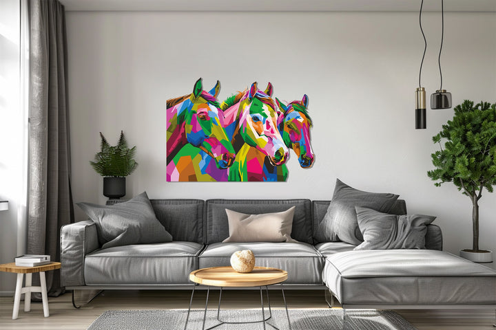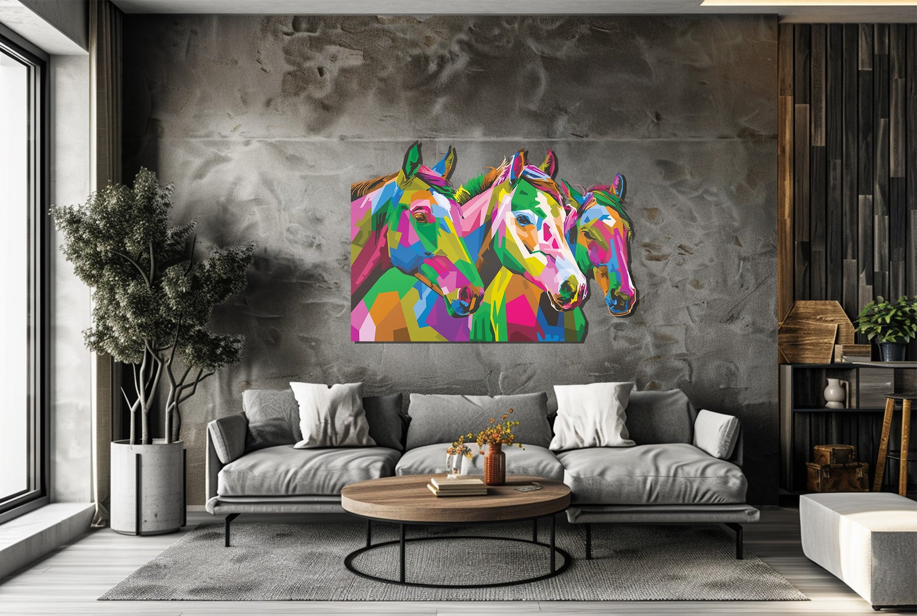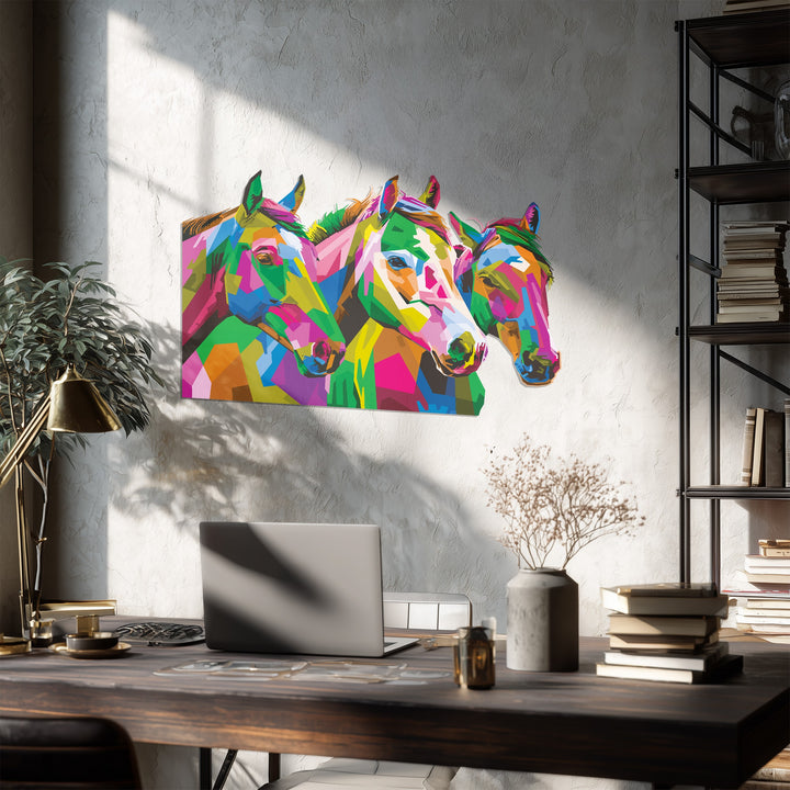 Trio of Horses Metal Wall Art – Vibrant Abstract Animal Wall Decor
