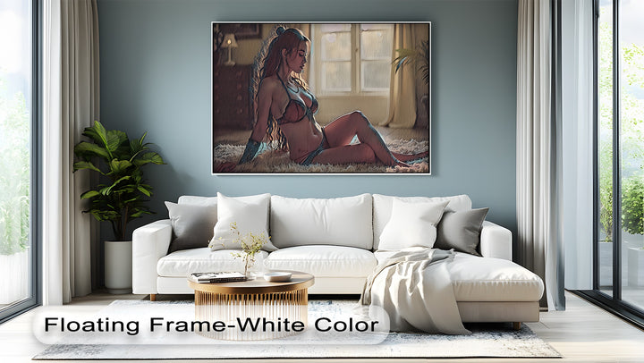 The warm glow of golden hour spills across her skin, casting a painterly glow that turns a private scene into powerful visual poetry. With its fine balance of erotic emotion and contemplative quiet, this artwork canvas transforms everyday interiors into sanctuaries of mood and story.
