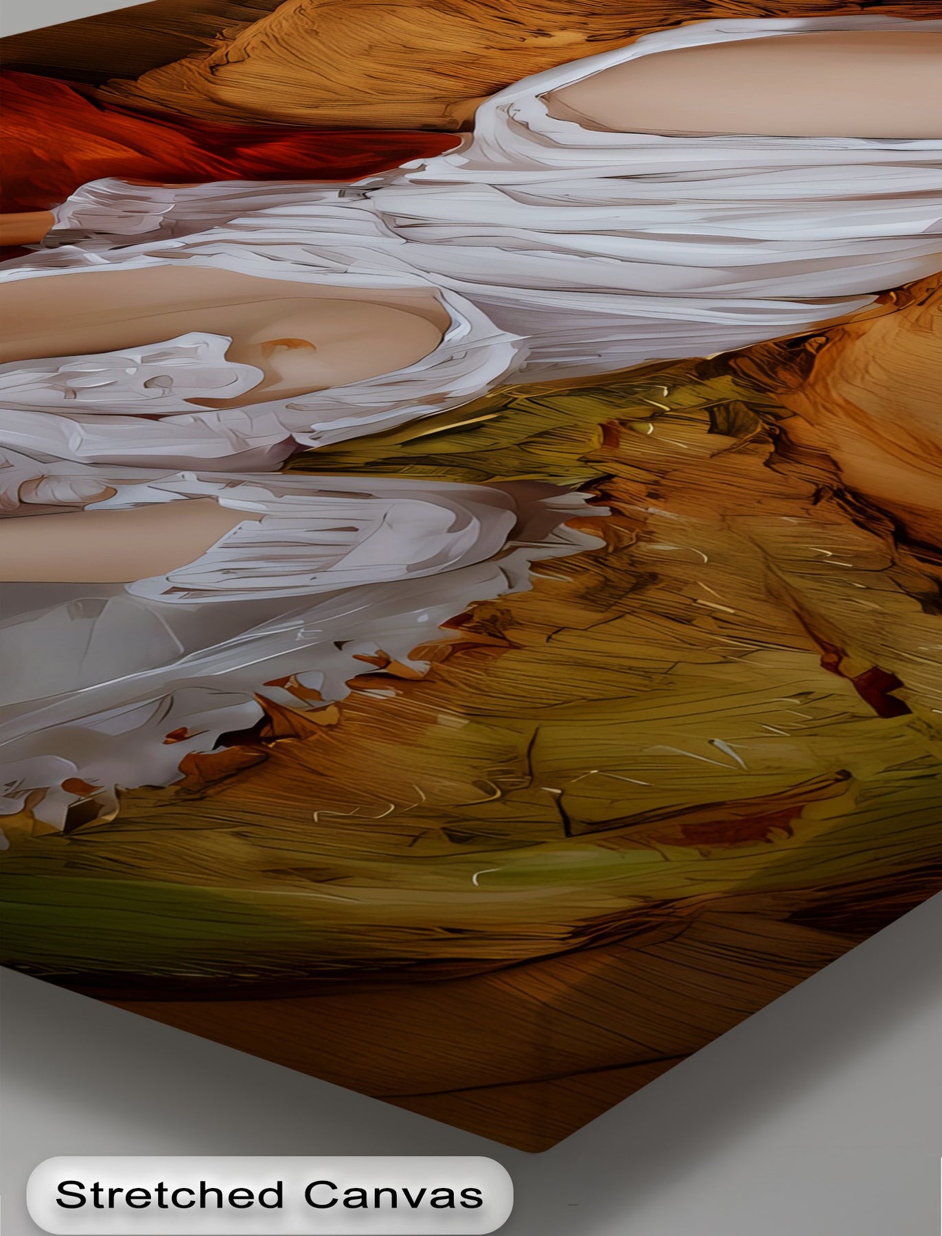 Velvet Silence invites viewers into a world of hushed intimacy, where a reclining woman rests quietly on warm-toned linens, her figure cloaked in soft, ruffled white drapery. With her gaze turned inward and posture relaxed, this erotic canvas wall art evokes a poetic stillness—an unspoken sensuality that blends emotion and elegance.