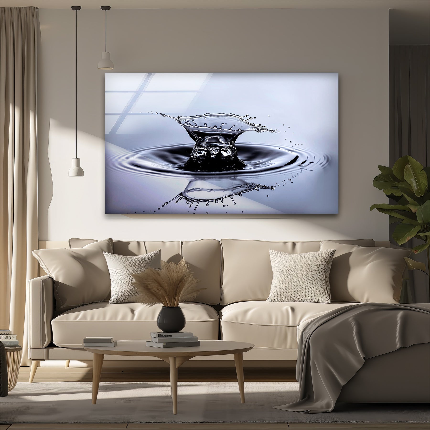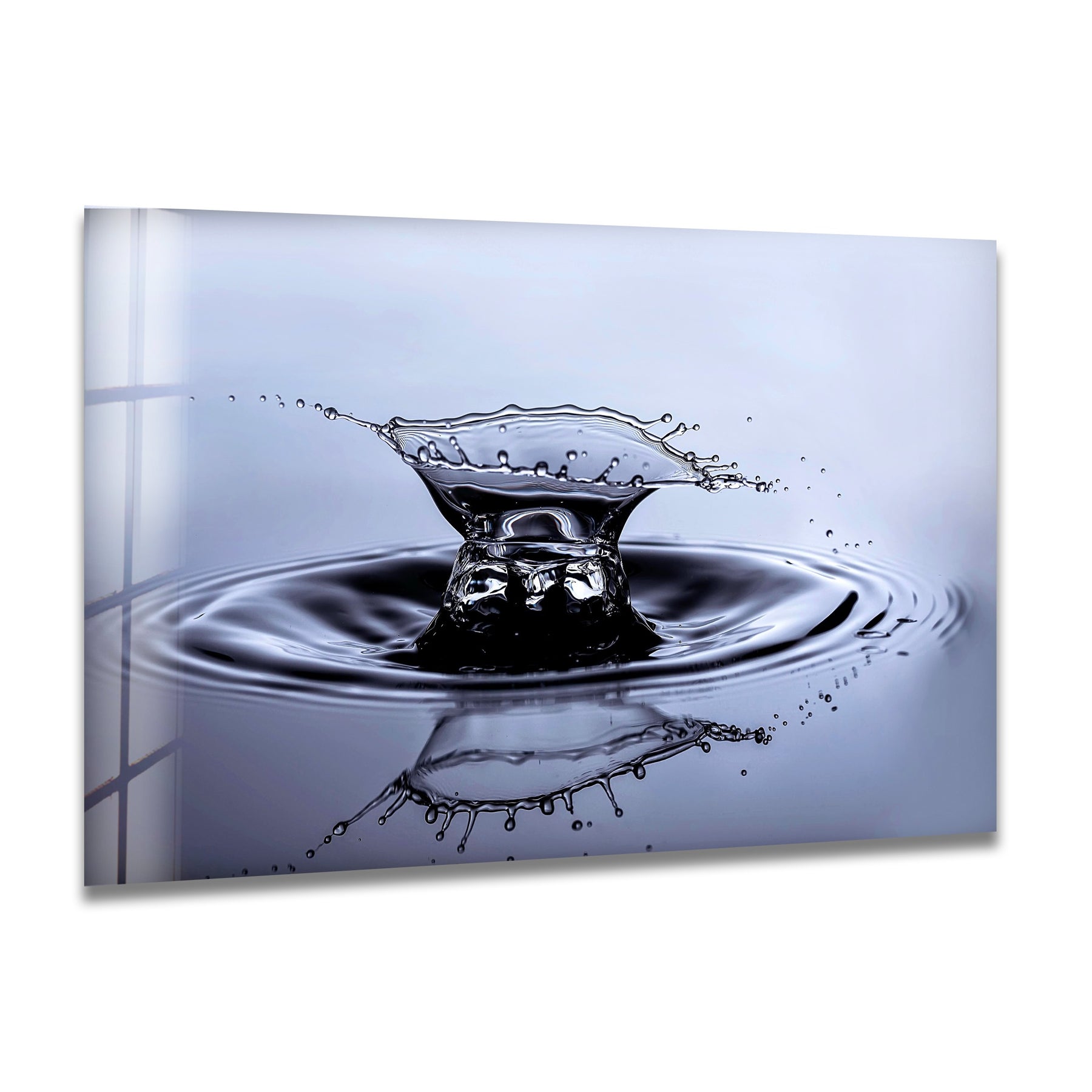 Printed on high-gloss premium glass, every droplet, reflection, and ripple is rendered with exceptional clarity. Ideal for living rooms, offices, bathrooms, hallways, or high-end commercial settings, this artwork adds a calming yet visually powerful presence to your décor.