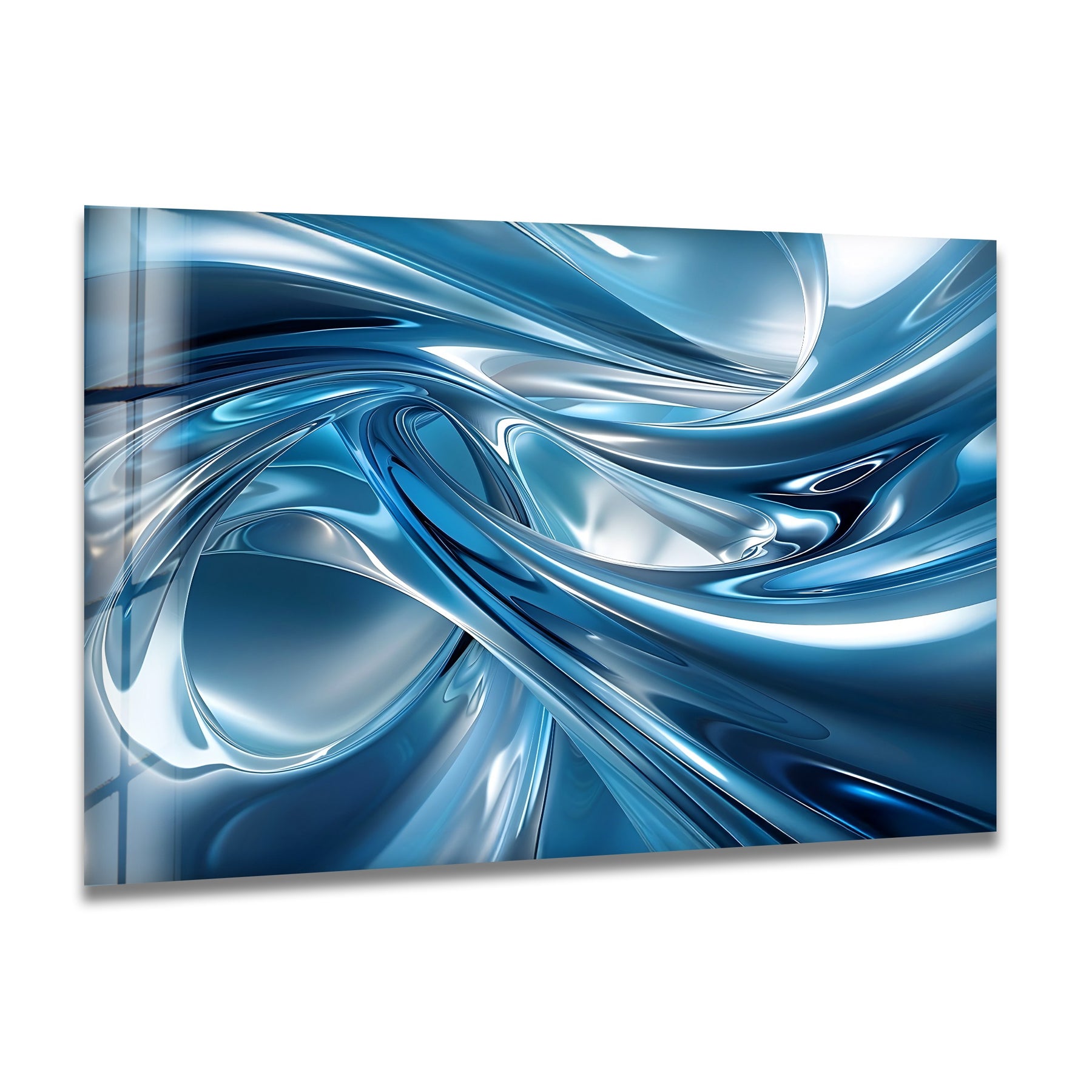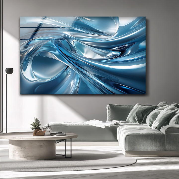 Printed on premium high-gloss glass, every reflection and gradient appears ultra-crisp and luminous. Whether placed in a living room, office, bedroom, or luxury commercial setting, this piece adds sophistication and a cool, modern ambiance to any environment. The dynamic design makes it a stunning centerpiece for contemporary décor lovers.