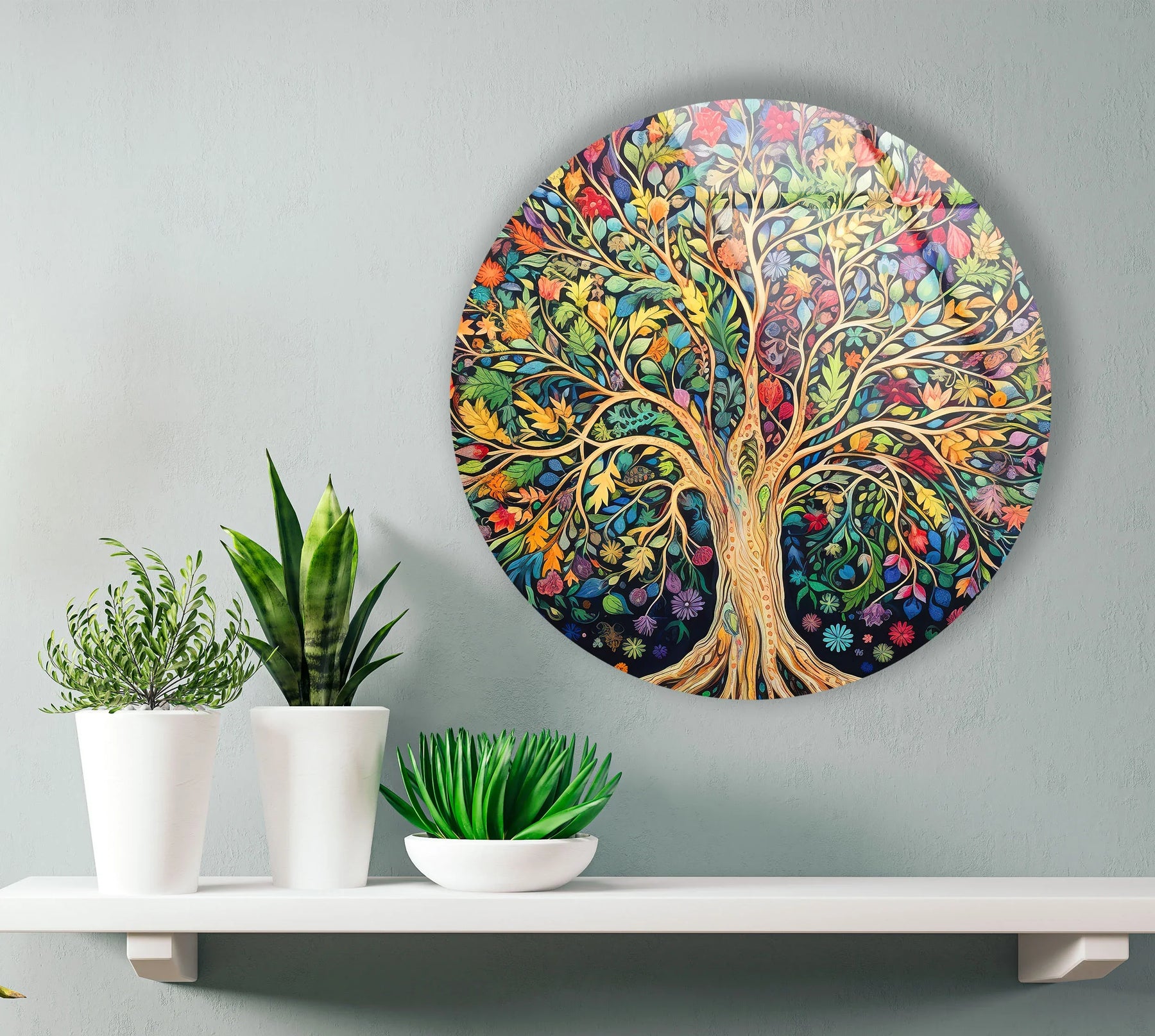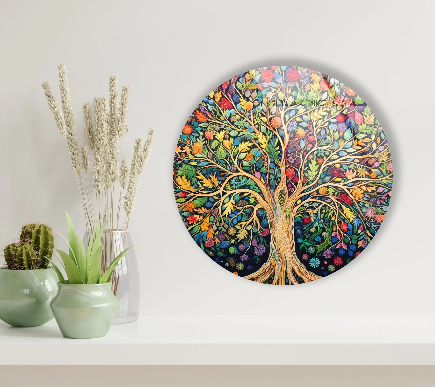 Colorful Tree of Life Wall Art – Round Glass Print with Vibrant Botanical Design for Nature-Inspired Home Decor - MyPhotoStation