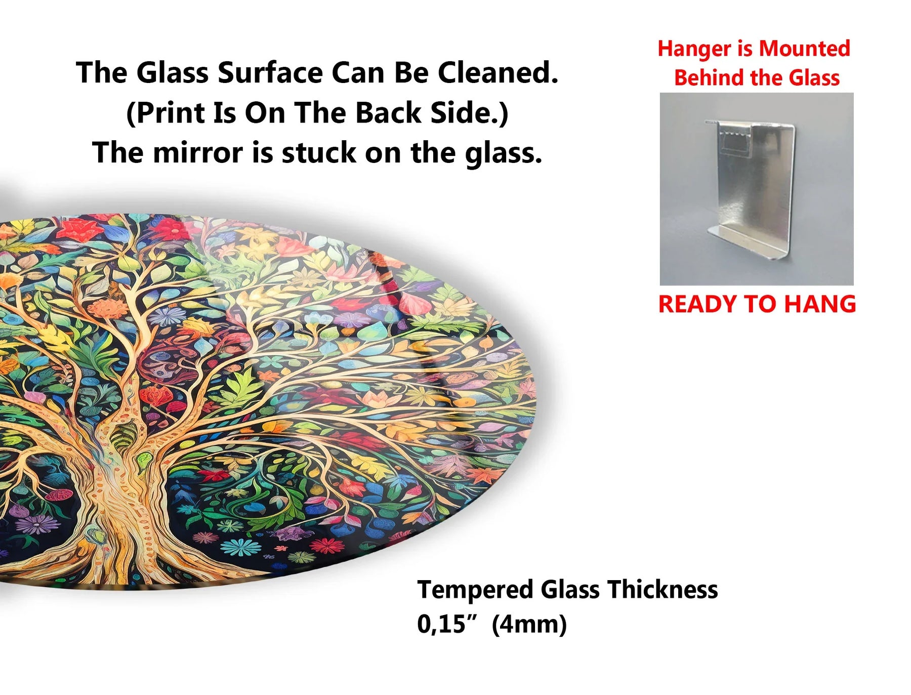 Enliven your space with this Colorful Tree of Life Wall Art, a striking round glass print that radiates harmony, nature, and vivid color. Featuring an intricately designed tree with a spectrum of leaves and blossoms, this artwork represents growth, balance, and positive energy. Its stunning composition makes it perfect for living rooms, bedrooms, meditation corners, or any area that needs a touch of life and inspiration. Crafted with high-definition UV print technology on tempered glass, this piece ensures brilliant detail, a glossy finish, and lasting quality that won’t fade over time.