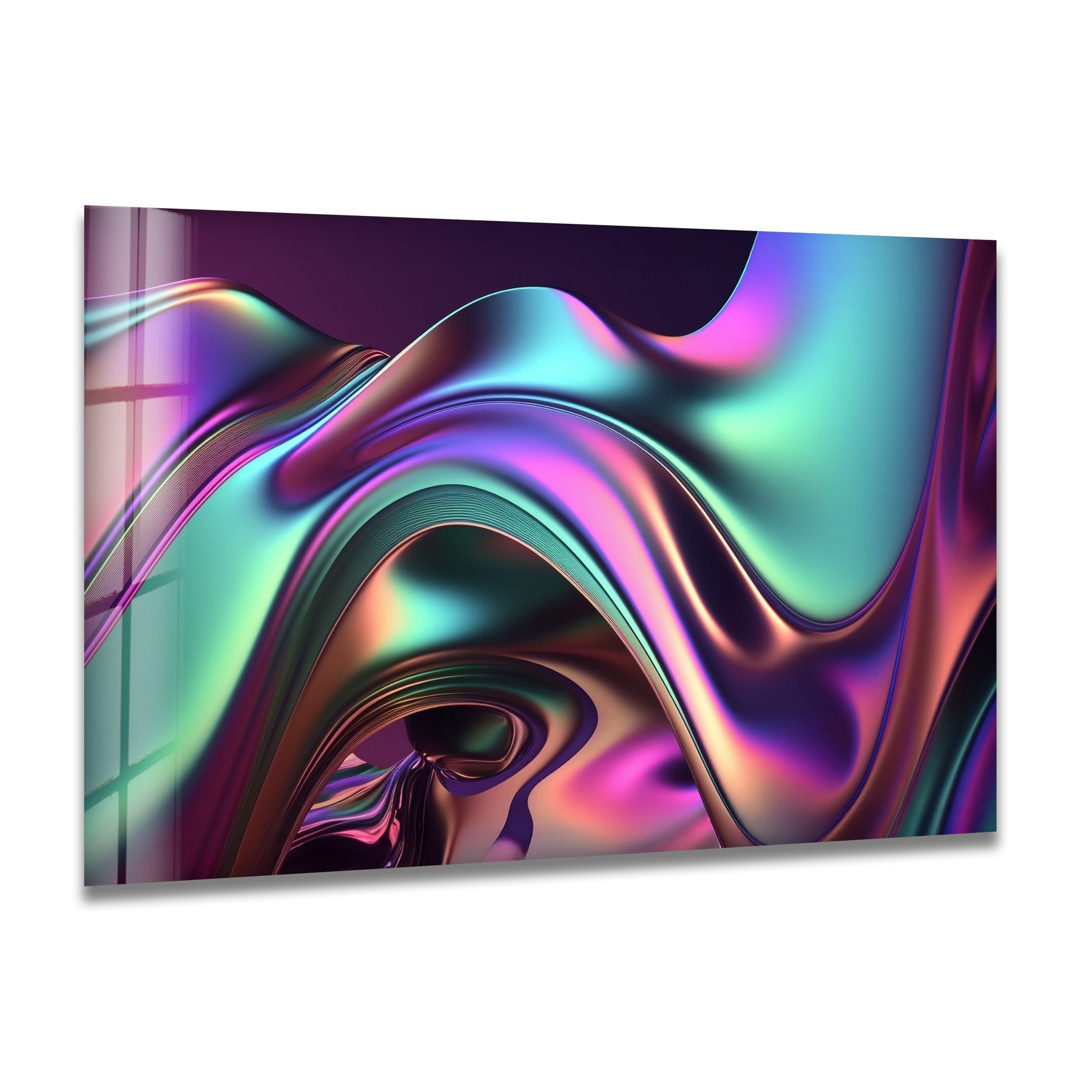 Iridescent Wave Mirage – Neon Chrome Flow Glass Wall Art