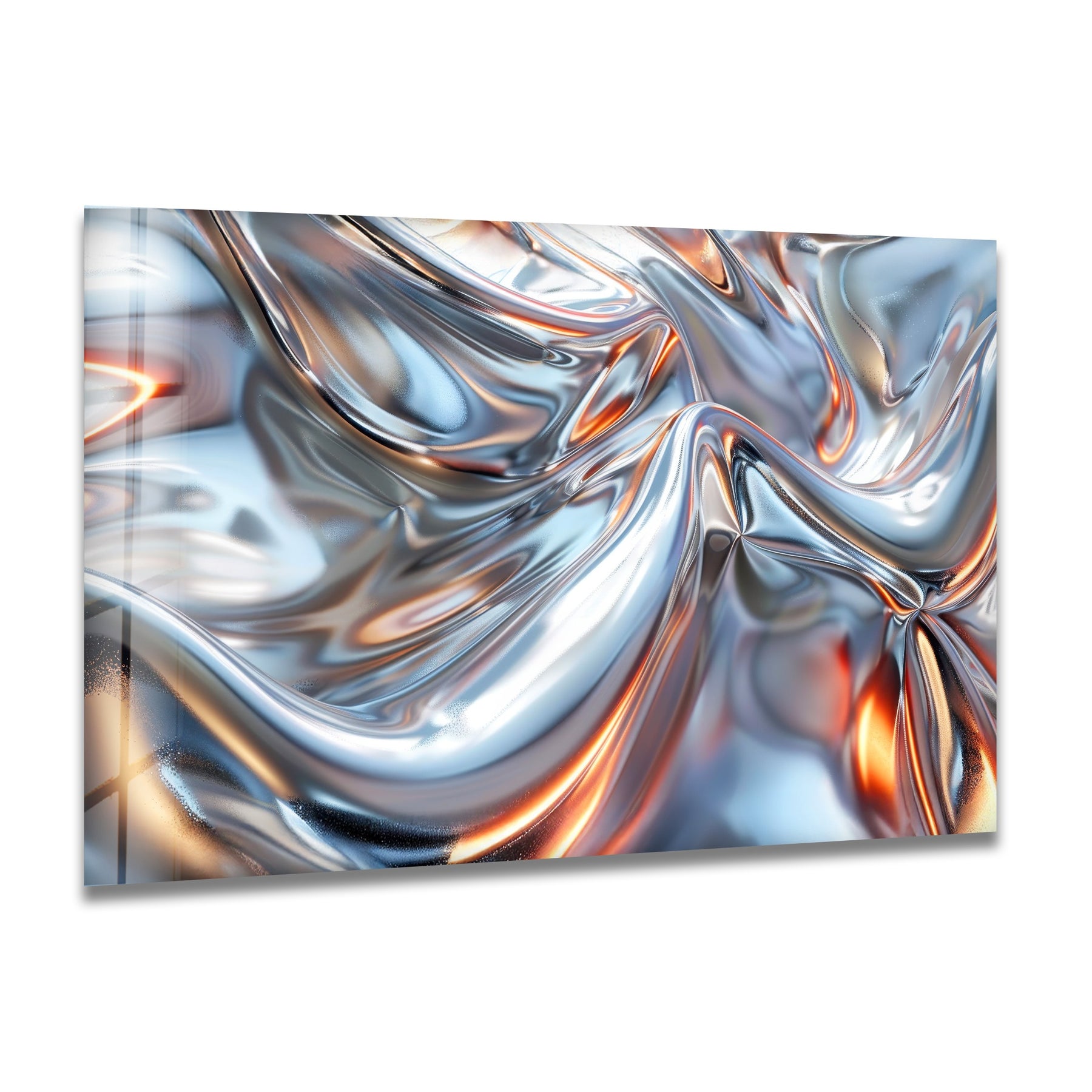 Luminous Steel Drift – Abstract Chrome Silver Glass Wall Art