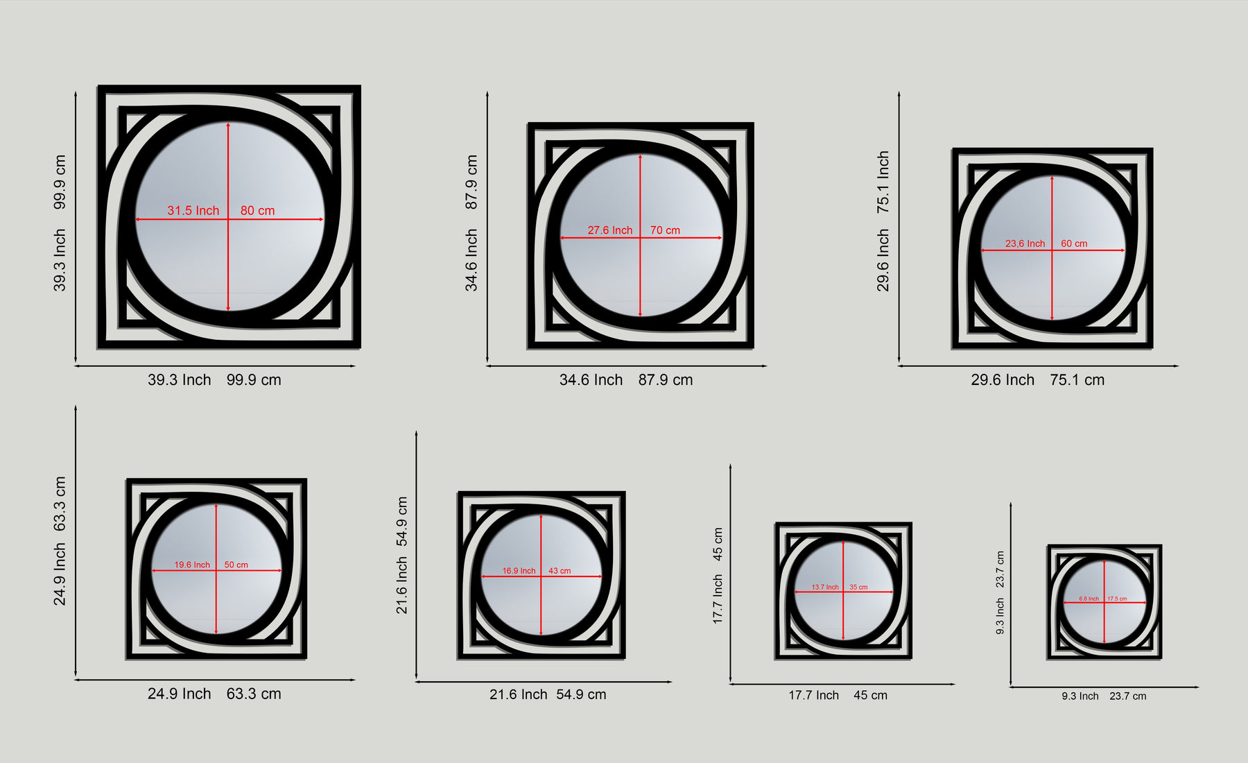 Ideal as a bathroom mirror, entryway mirror, or sleek hallway mirror, this piece reflects light beautifully while adding sculptural depth to your wall decor. The combination of square and round forms offers a modern twist, making it a standout addition to contemporary and minimalist interiors.